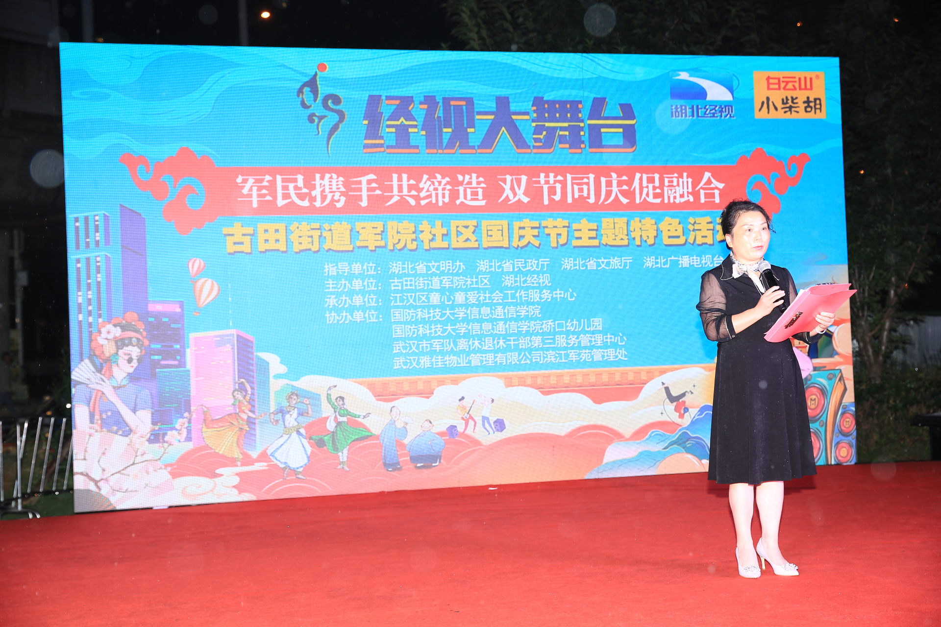 近日,由武汉市硚口区古田街道军院社区联合湖北经视视经视大舞台主办,童心童爱社工中心承办的“军民携手共缔造·双节同庆促融合”国庆节主题特色活动在夜幕中拉开帷幕。
