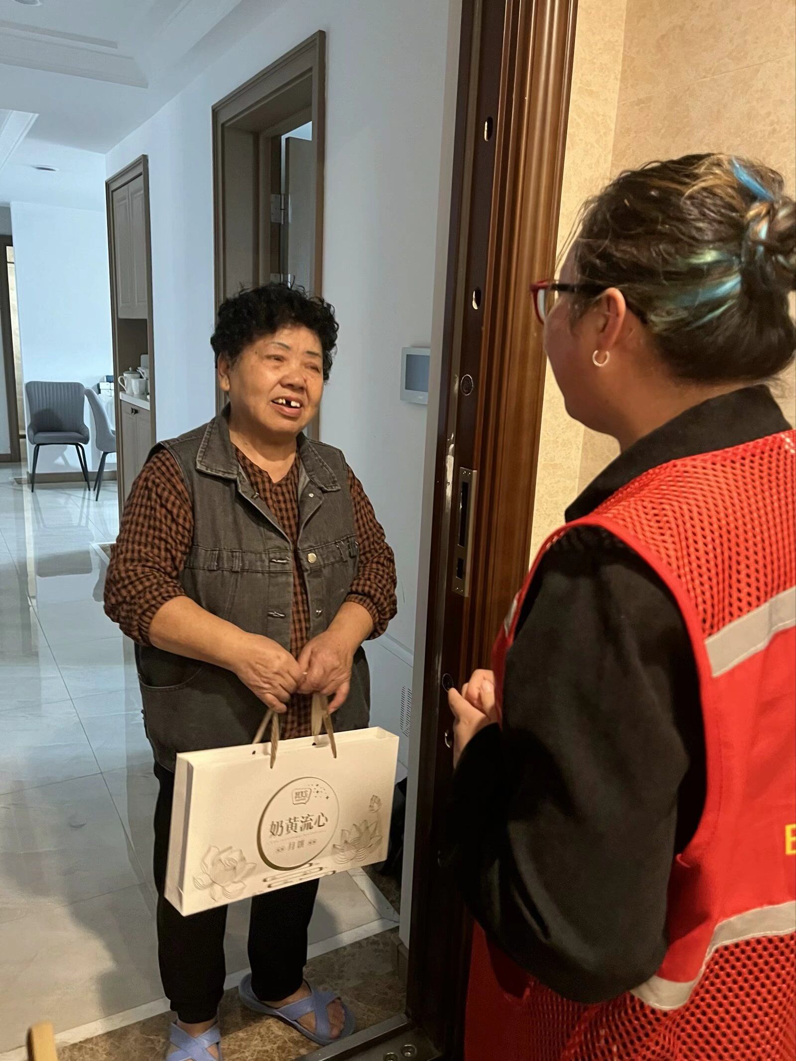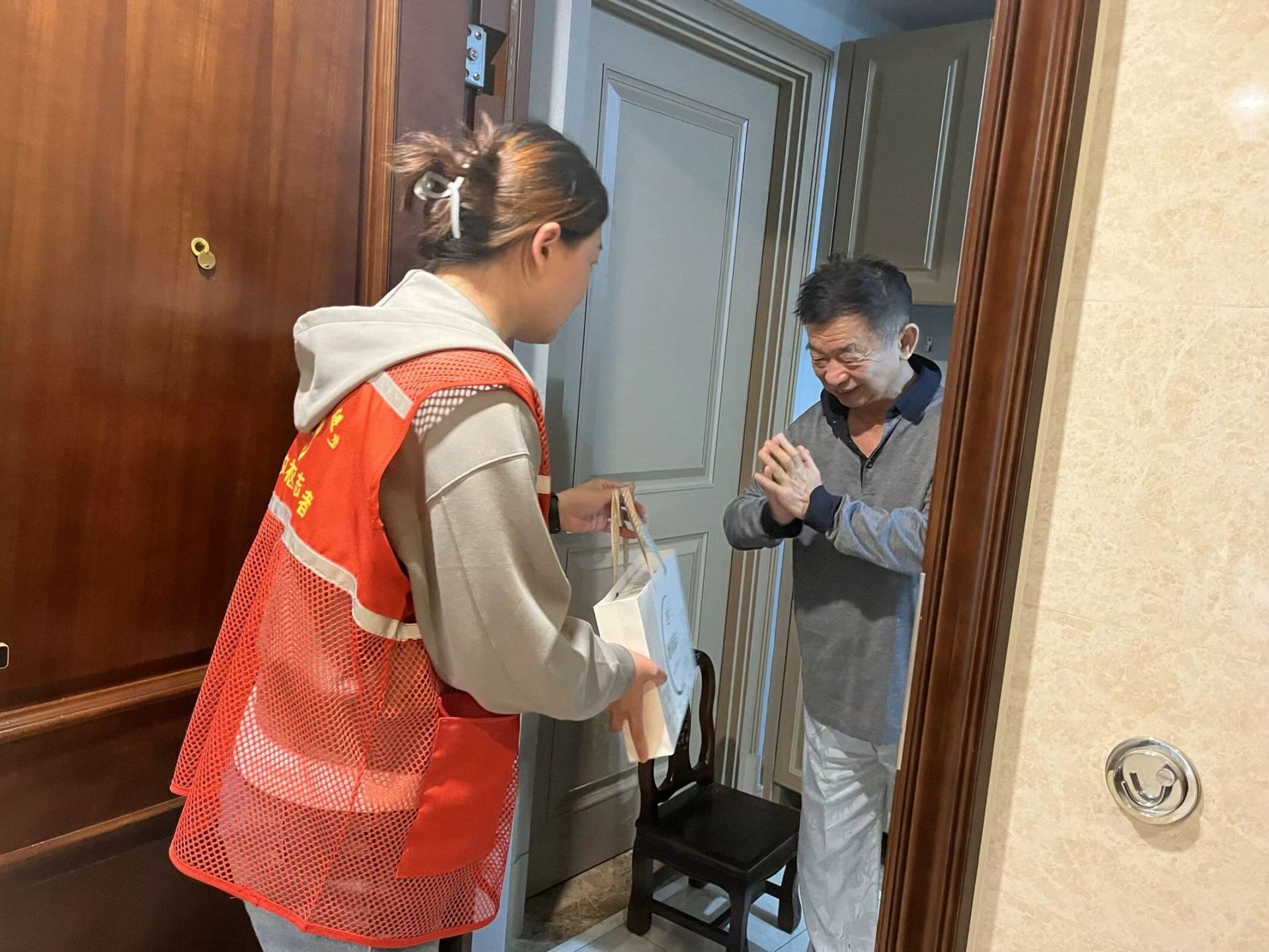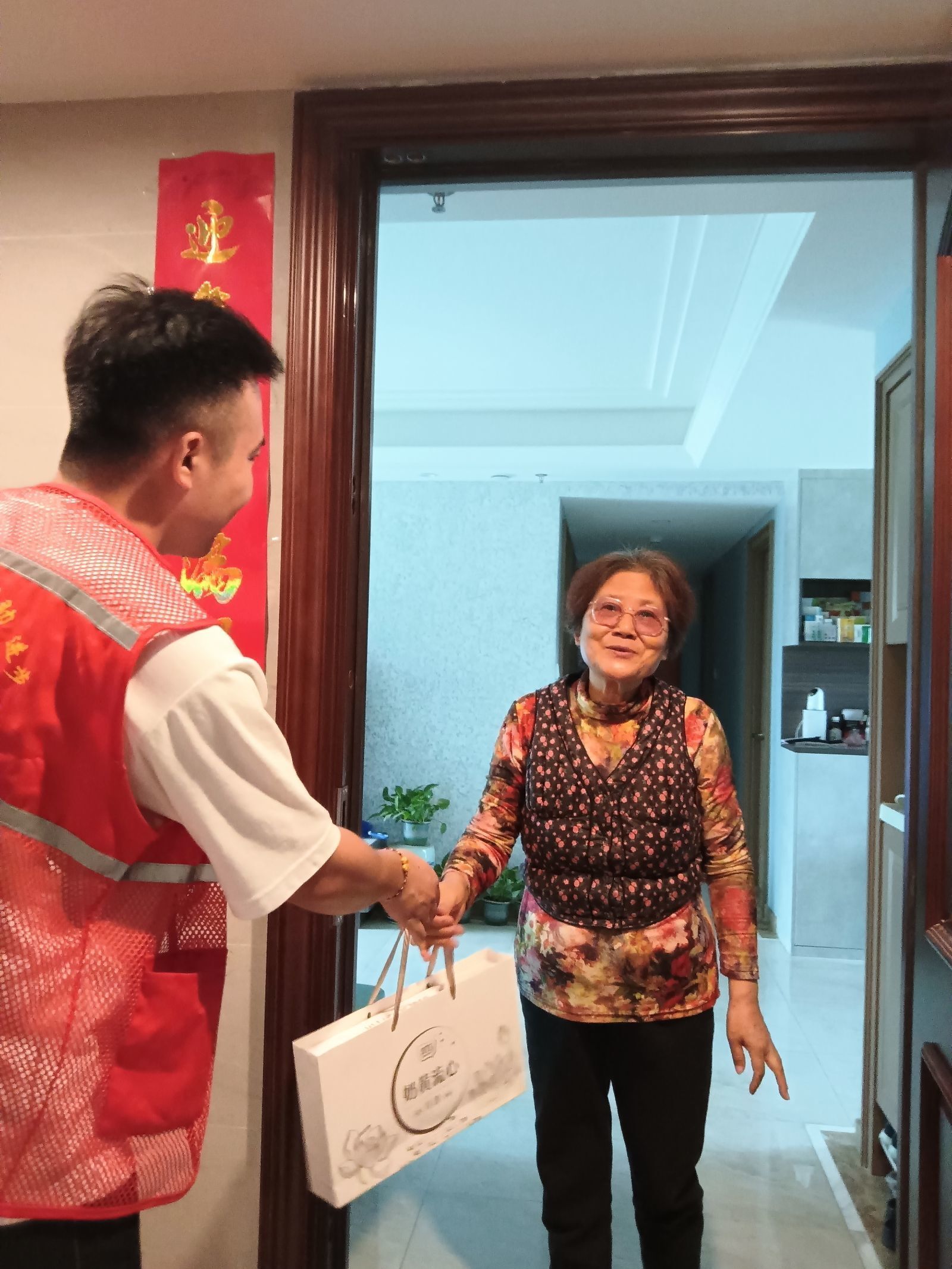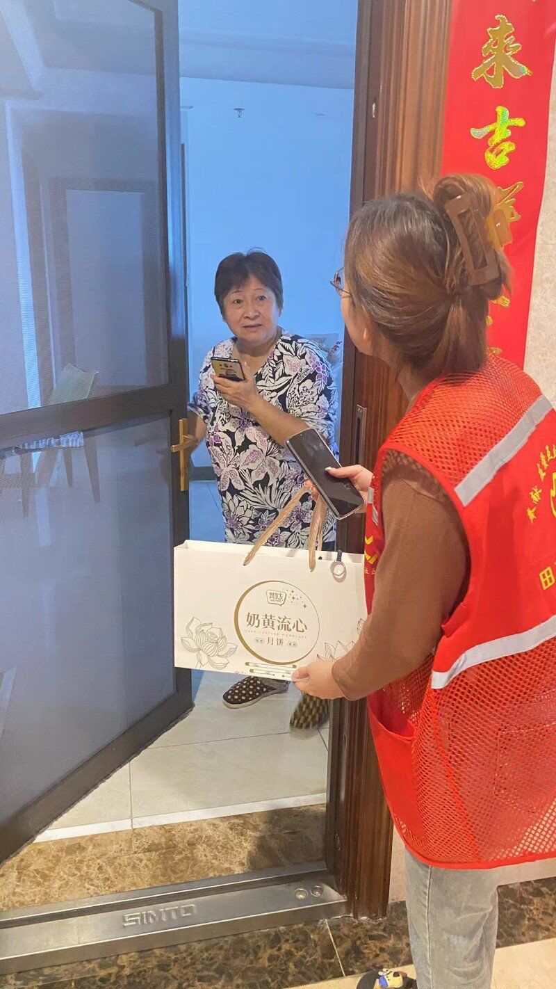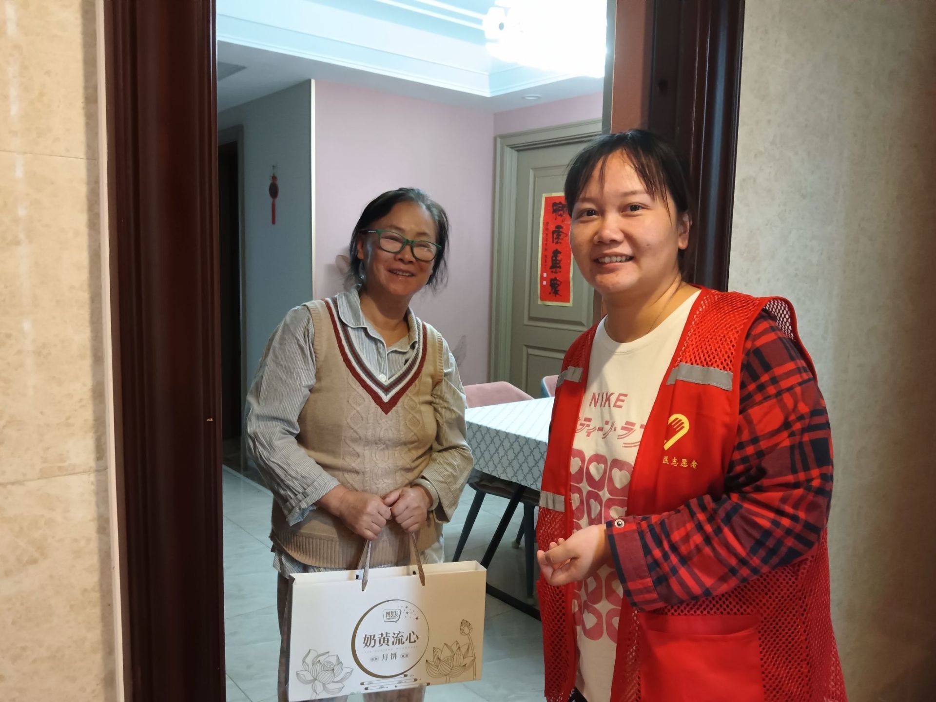 月饼虽小,却承载着浓浓的邻里情。参加活动居民和社区工作人员将月饼装进礼盒,送给社区空巢老人,提前为他们送上中秋节的祝福。