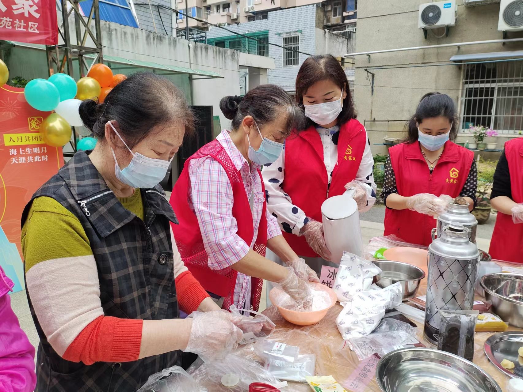 活动中,活动举办方为居民准备了糯米粉、豆沙馅等材料。工作人员向居民详细介绍了制作手工冰皮月饼的方法、技巧和步骤。居民们围坐一起,按照讲解和示范,一步一步地揉面团、擀面皮、包馅、压膜……虽然大部分居民都是第一次尝试做冰皮月饼,但是大家兴趣十足,学得认真,做得仔细,冰皮月饼做得有模有样。吃着自己亲手制作的冰皮月饼,大家的喜悦之情溢于言表,成就感满满。月饼做好后,还把月饼宋给社区的高龄独居老人,让他们在这欢庆的节日里品尝“甜甜”的味道。