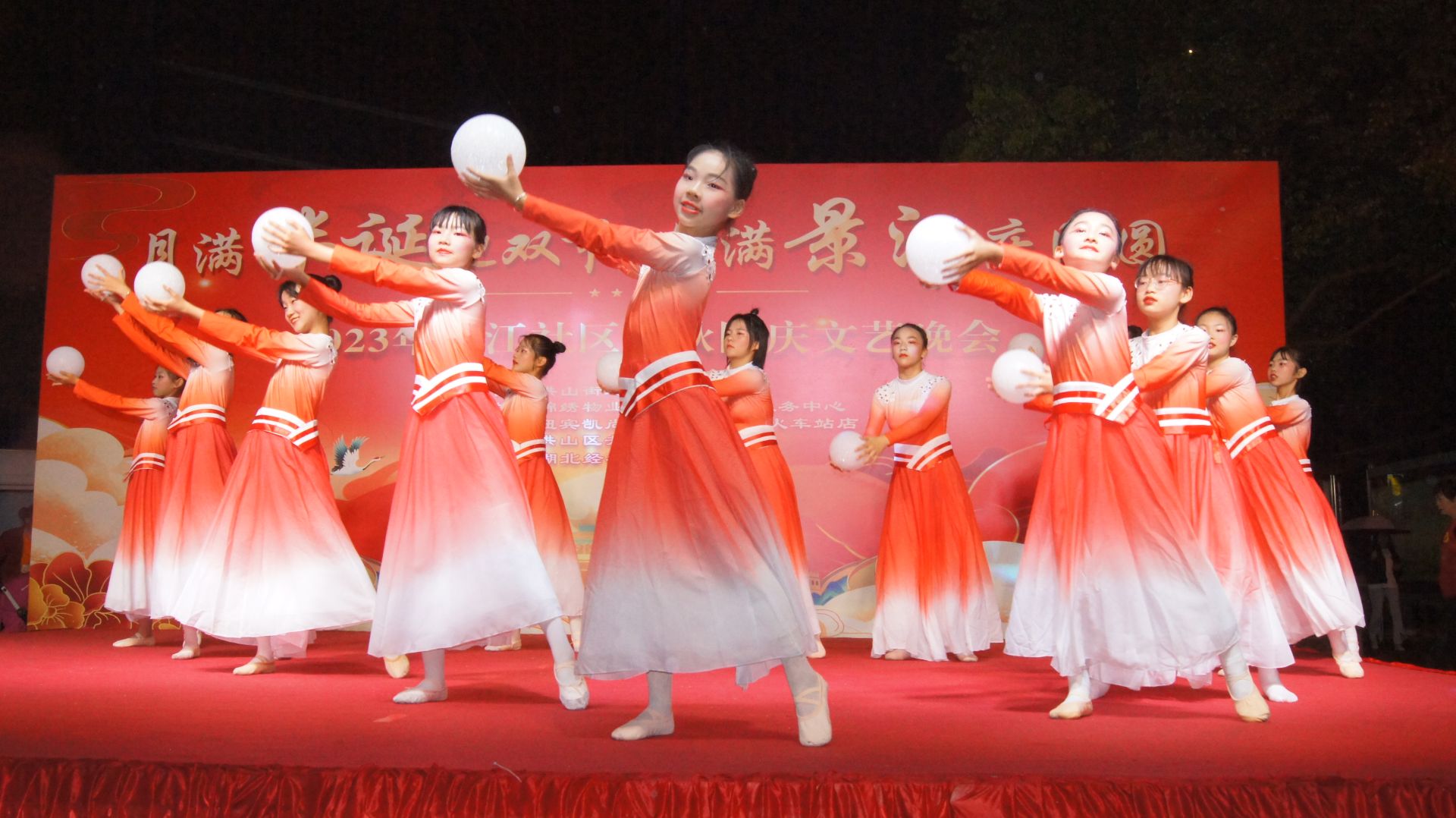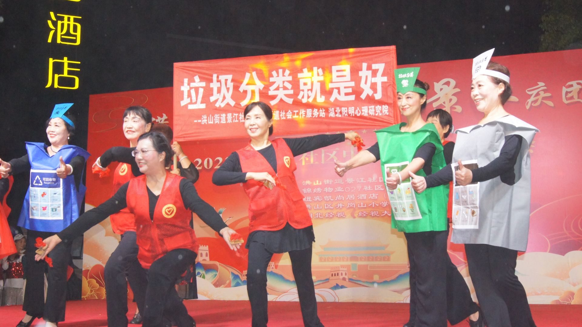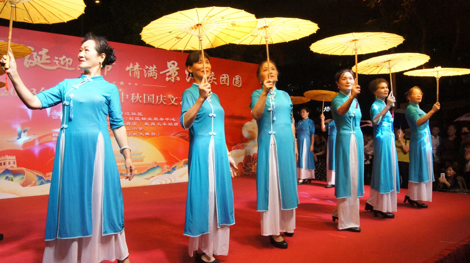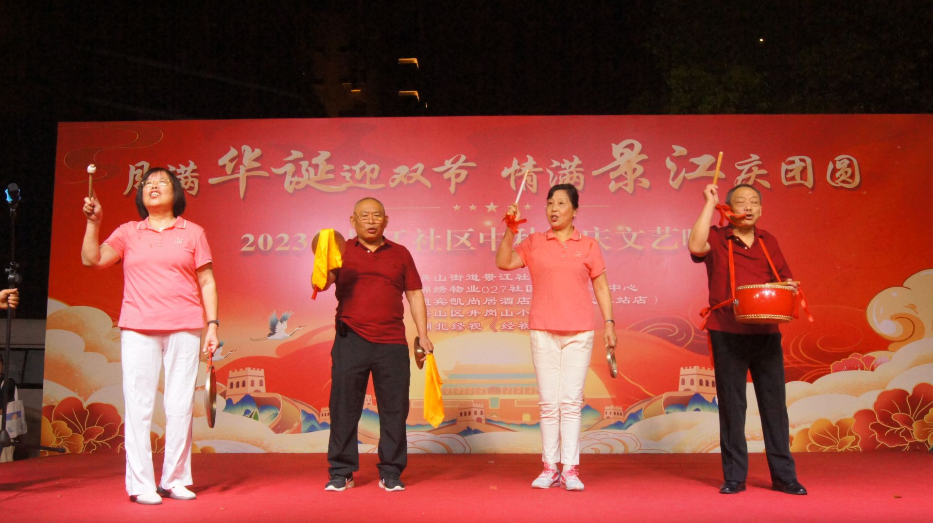 为喜迎双节,武汉市洪山区洪山街道景江社区联合湖北经视《经视大舞台》开展“月满华诞迎双节 情满景江庆团圆”为主题的文艺晚会。