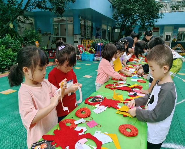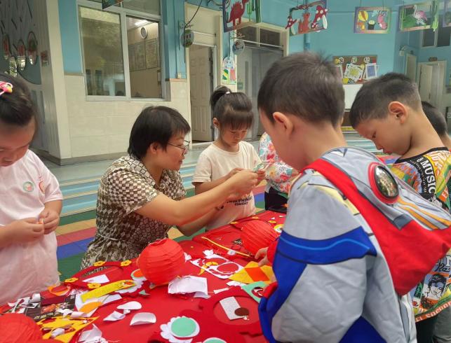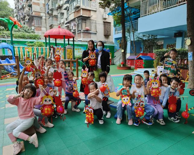 “阿姨,你看看我做的小狮子灯笼,我给它设计的粉色嘴巴”、“我做的是小兔子的灯笼,它也太可爱了吧”,在江岸区英才幼儿园小操场上,大班小朋友们经过一个多小时的手工制作,争先恐后地向老师和社区工作人员展示着自己亲手DIY的卡通灯笼,他们得到点赞的大拇指后别提有多自豪多高兴了。