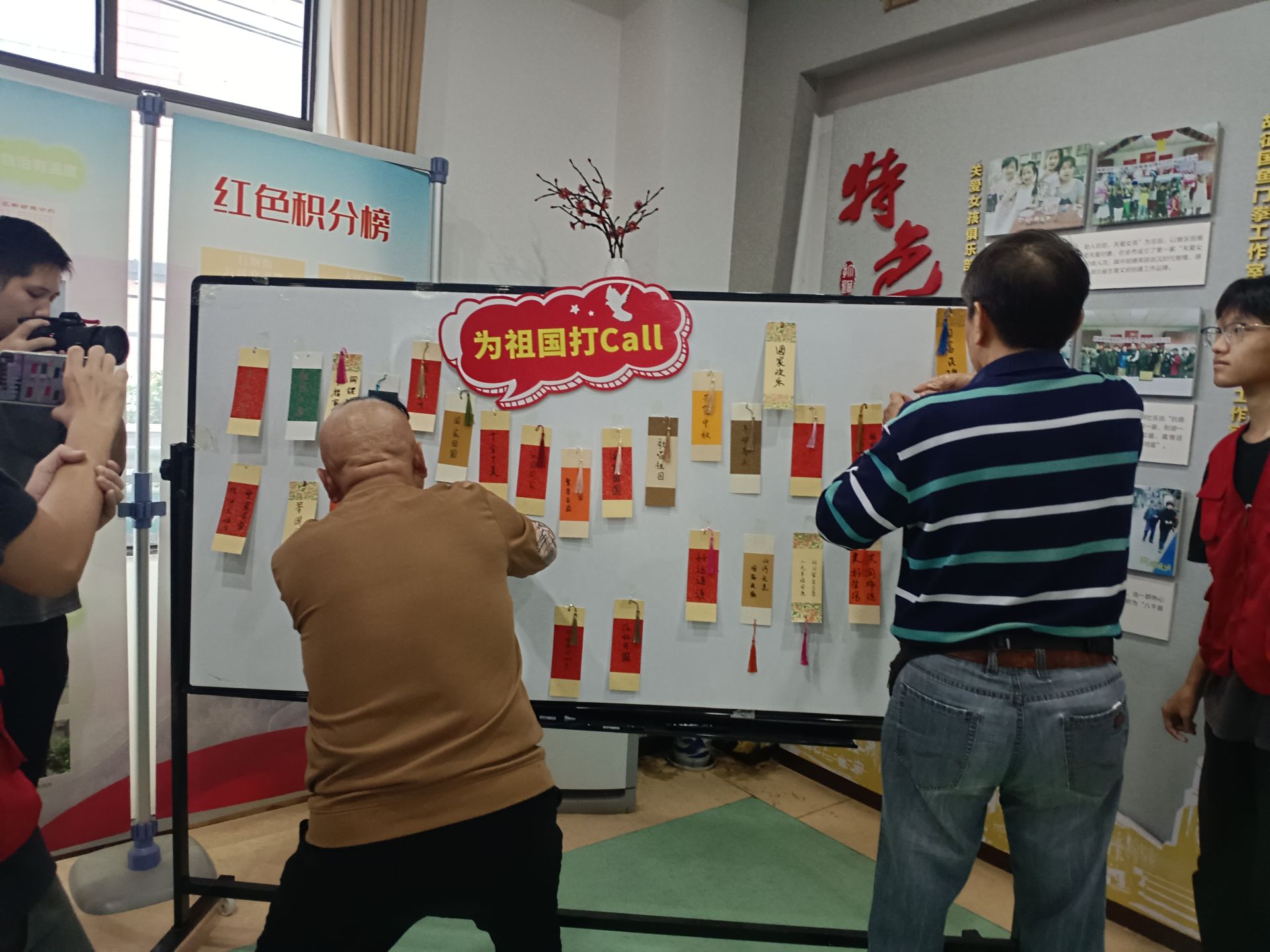 “祝愿祖国永远繁荣昌盛,国泰民安。愿我们的生活如同这美好的节日一样,越来越甜美。”二楼大厅表白板上,挂满了社区居民对祖国最真挚的祝福。社区居民用独特的方式——书签,来表达对中秋和国庆的祝福,对伟大祖国深深地热爱。现场居民以个人或家庭为单位,设计和制作具有中秋和国庆元素的书签,将自己的情感和心愿倾注在小小的书签上,赋予了书签特别的意义。更有社区的青年朋友用丰富的色彩语言与一双巧手绘制了精美的扇面,“以美润心,笔墨传情”,团扇轻轻摇起之时,感受到的不仅只有凉爽的清风,更是对廉洁自律这一中国民族传统美德的发扬传承。