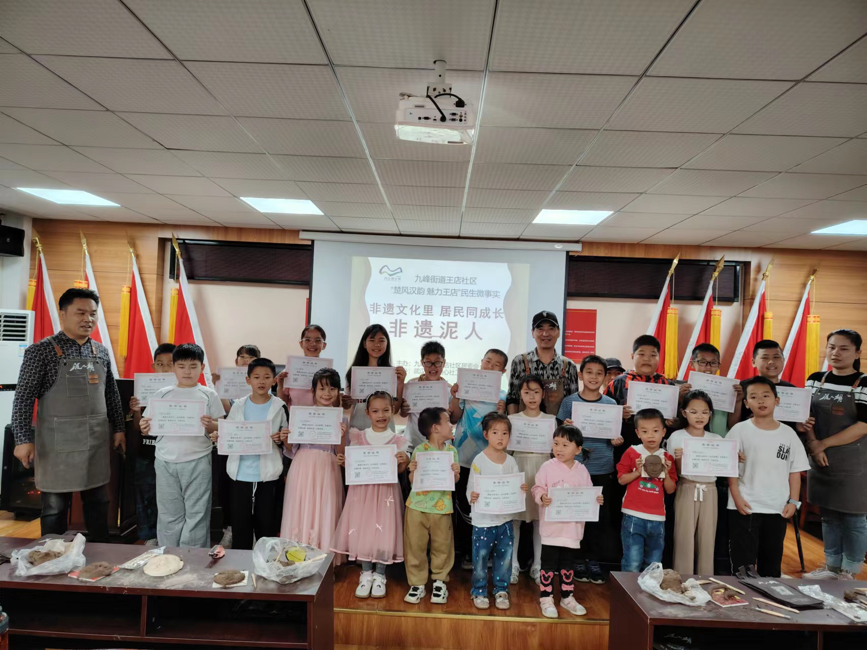 9月24日下午,武汉东湖高新区九峰街道王店社区举办了“非遗文化里 居民同成长”非遗泥塑体验活动,活动一经发出,就吸引了20组家庭踊跃报名参加。