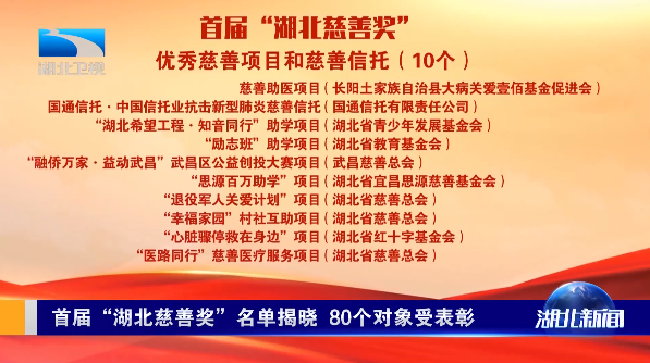 昨天(9月26日),省政府印发《关于颁发首届湖北慈善奖的决定》,授予80个对象首届“湖北慈善奖”。