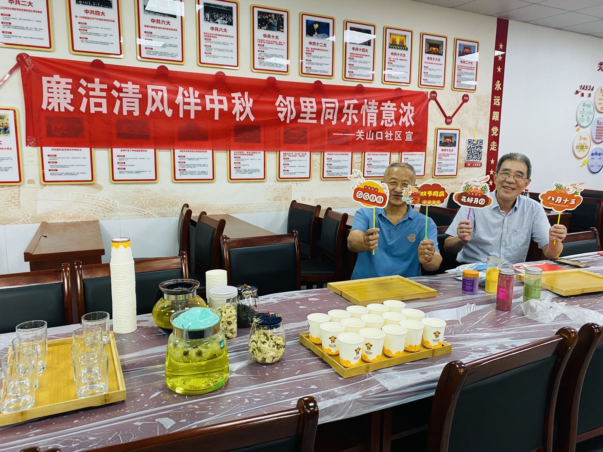 在中秋佳节来临之际,为丰富居民的文化生活,促进社区清廉文化建设,弘扬中华民族传统文化,号召大家过一个廉洁中秋、迎一个清风国庆,9月27日,武汉市洪山区关山街道关山口社区联合湖北经视《经视大舞台》以“双节喜相逢、共圆中国梦、幸福生活共同缔造”为主题开展中秋茶话会活动。