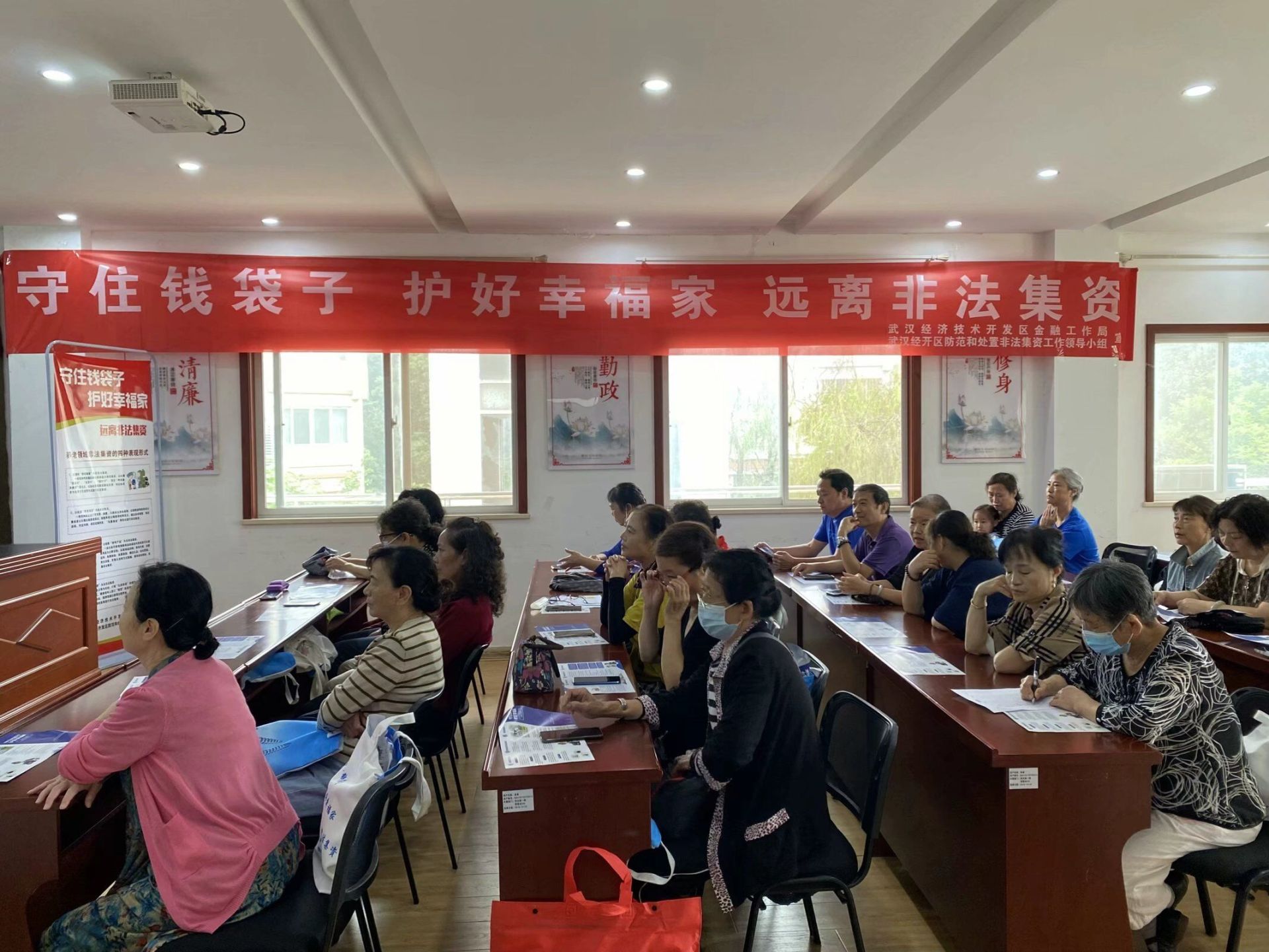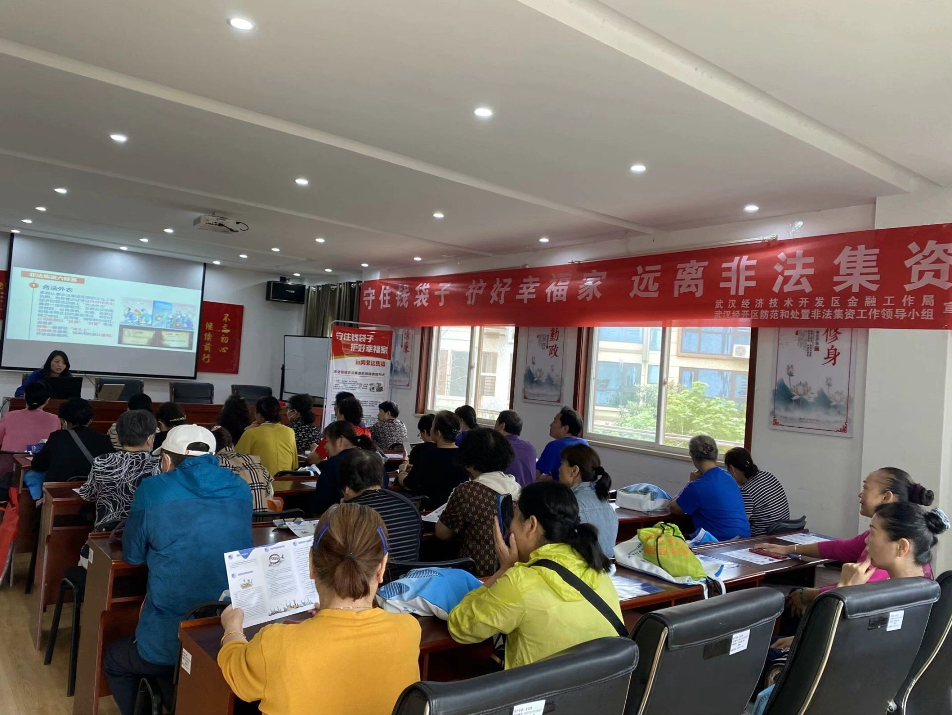 为提升辖区居民金融安全意识,防范非法集资行为的发生,9月27日上午,武汉市经济技术开发区沌阳街道阳光城社区特举办题为“守住钱袋子 护好幸福家 远离非法集资”普法教育讲座。本次讲座邀请了社区驻点律师谭红艳为广大居民朋友讲解非法集资的危害以及防范贴士。