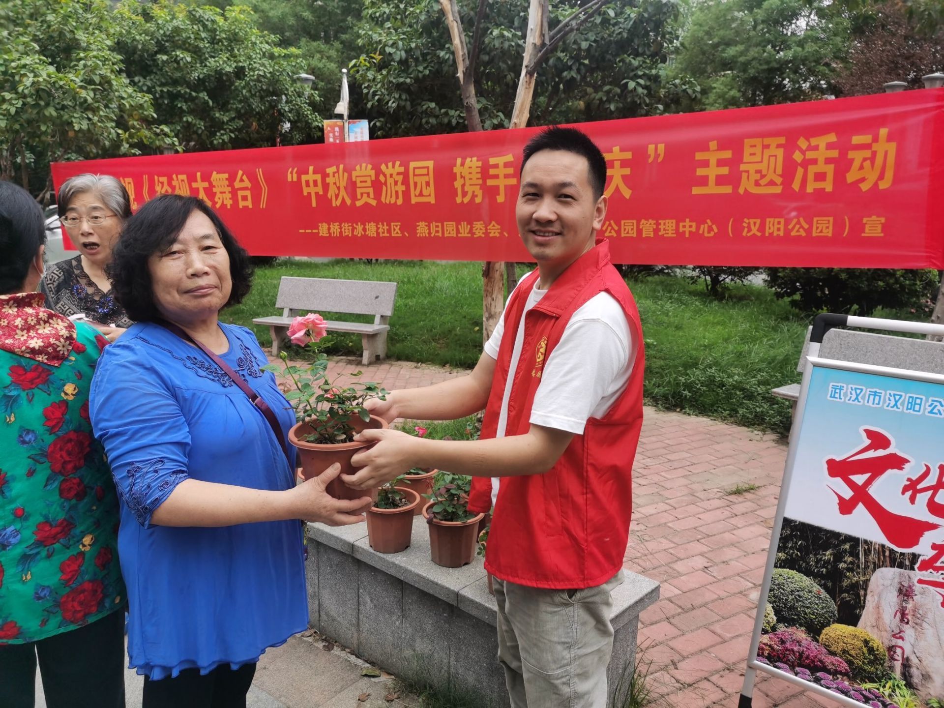 金秋时节,秋风送爽。为让辖区居民在传统习俗中得到人文关怀,并且享受文化活动带来的欢乐,9月27日上午,武汉市汉阳区建桥街道冰塘社区联合湖北经视《经视大舞台》,携手燕归园业委会、天源物业和公园管理中心在燕归园“知心亭”小广场举行“中秋赏游园,携手庆国庆”双节主题活动。