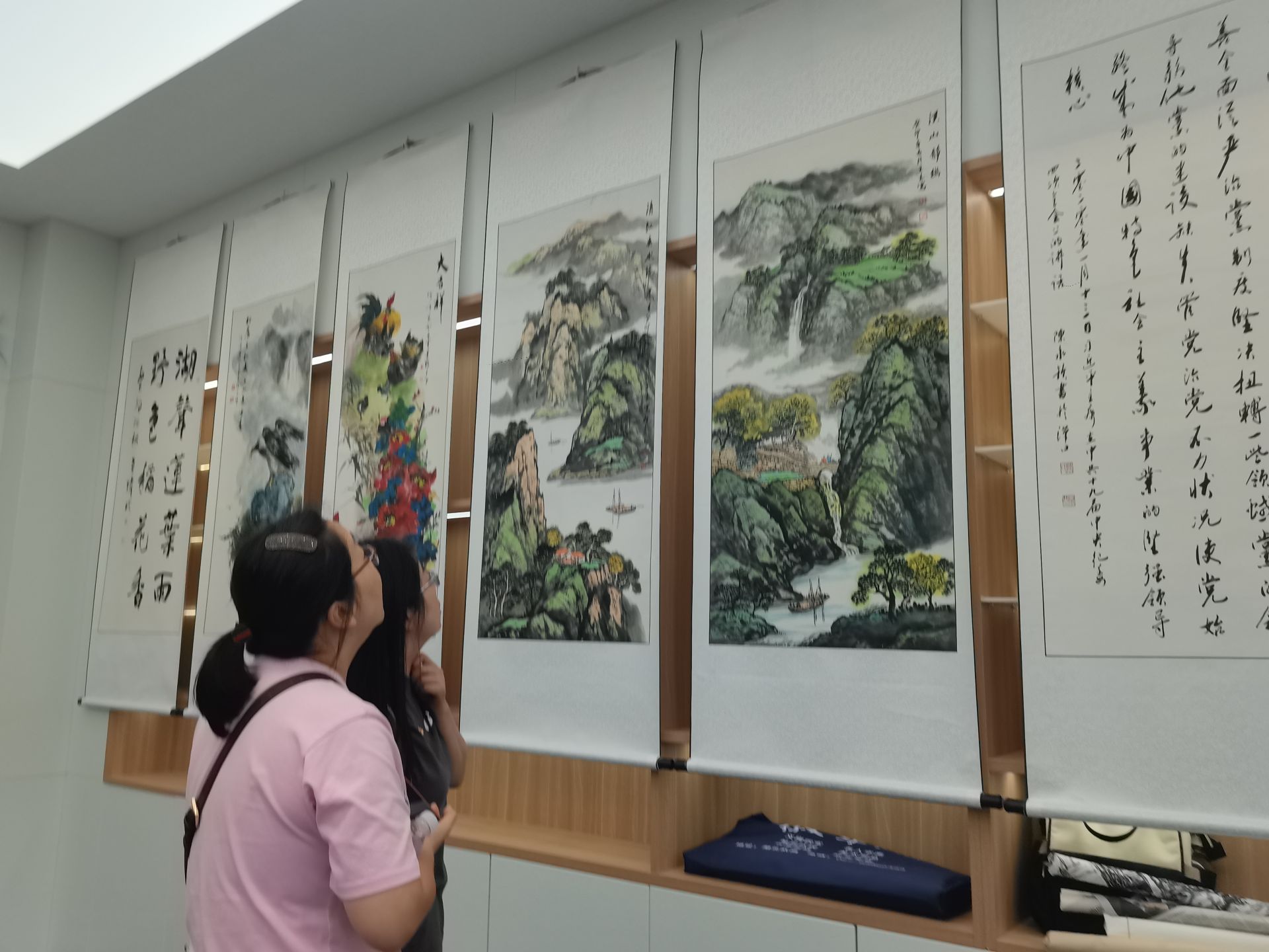 活动现场,一幅幅书画作品,或行云流水、狂放不羁;或清新飘逸、韵味十足;或苍劲有力、自然洒脱,精湛的书画技艺,充分展示了书画爱好者陶情墨海、矢志丹青的艺术风采,彰显了爱党爱国、积极向上的精神风貌。高质量的书画作品吸引了众多书画爱好者和居民驻足观赏,“这幅油画太传神了,简直跟拍的高清照片一样”一位姓王的女士感叹道,这种“零距离”的书画展,让大家近距离感受到中华传统文化的博大精深。