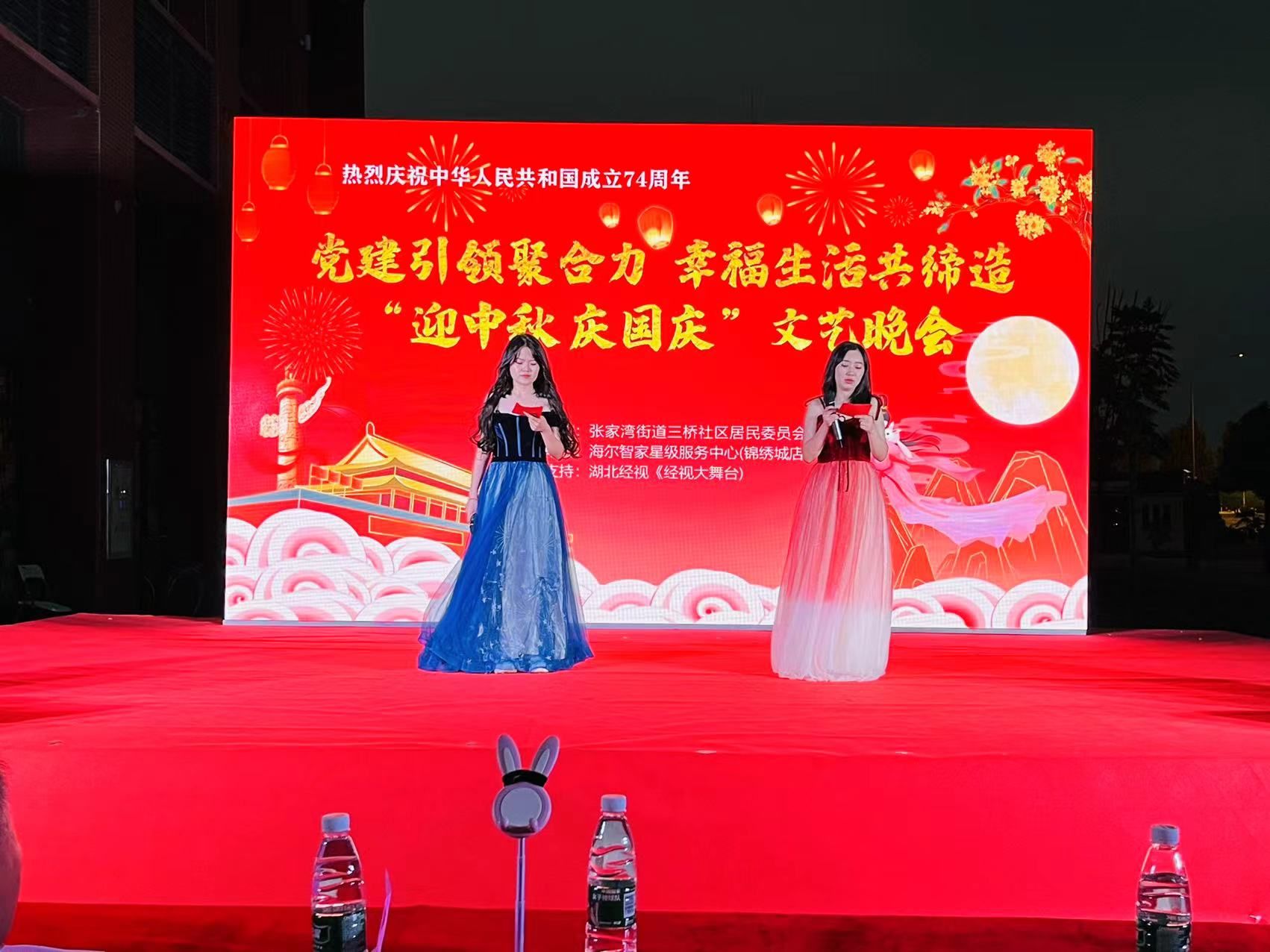中秋国庆即将到来,为庆祝祖国母亲的生日,丰富广大群众的文化生活,共同缔造社区平安和谐生活,弘扬中华民族的优秀文化,9月25日,武汉市洪山区张家湾街道三桥社区在花样年锦绣城开展了“党建引领聚合力,幸福生活共缔造”迎中秋庆国庆文艺晚会。