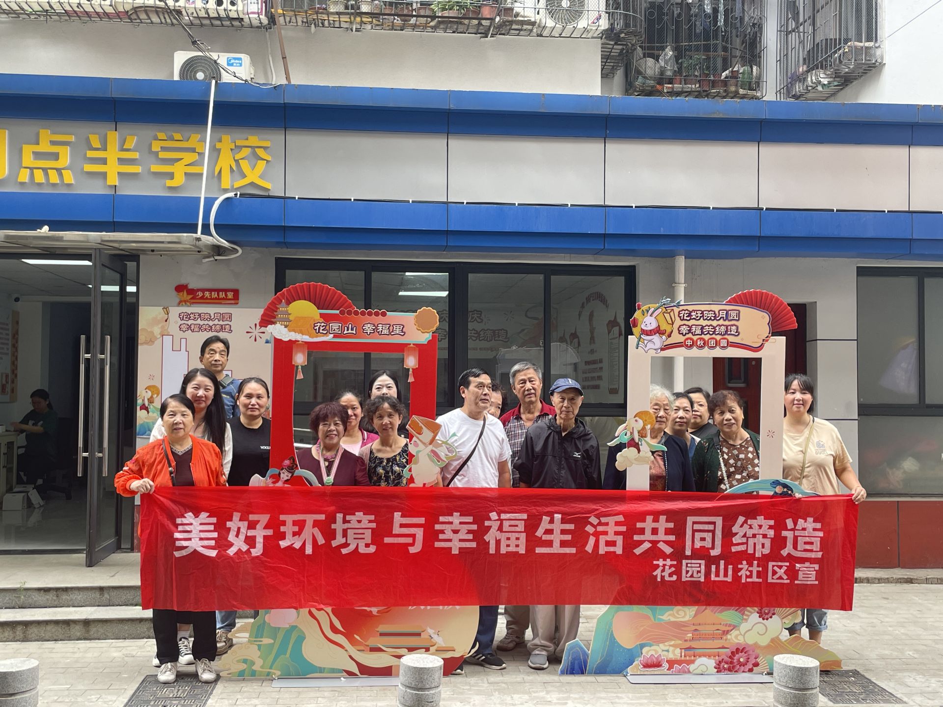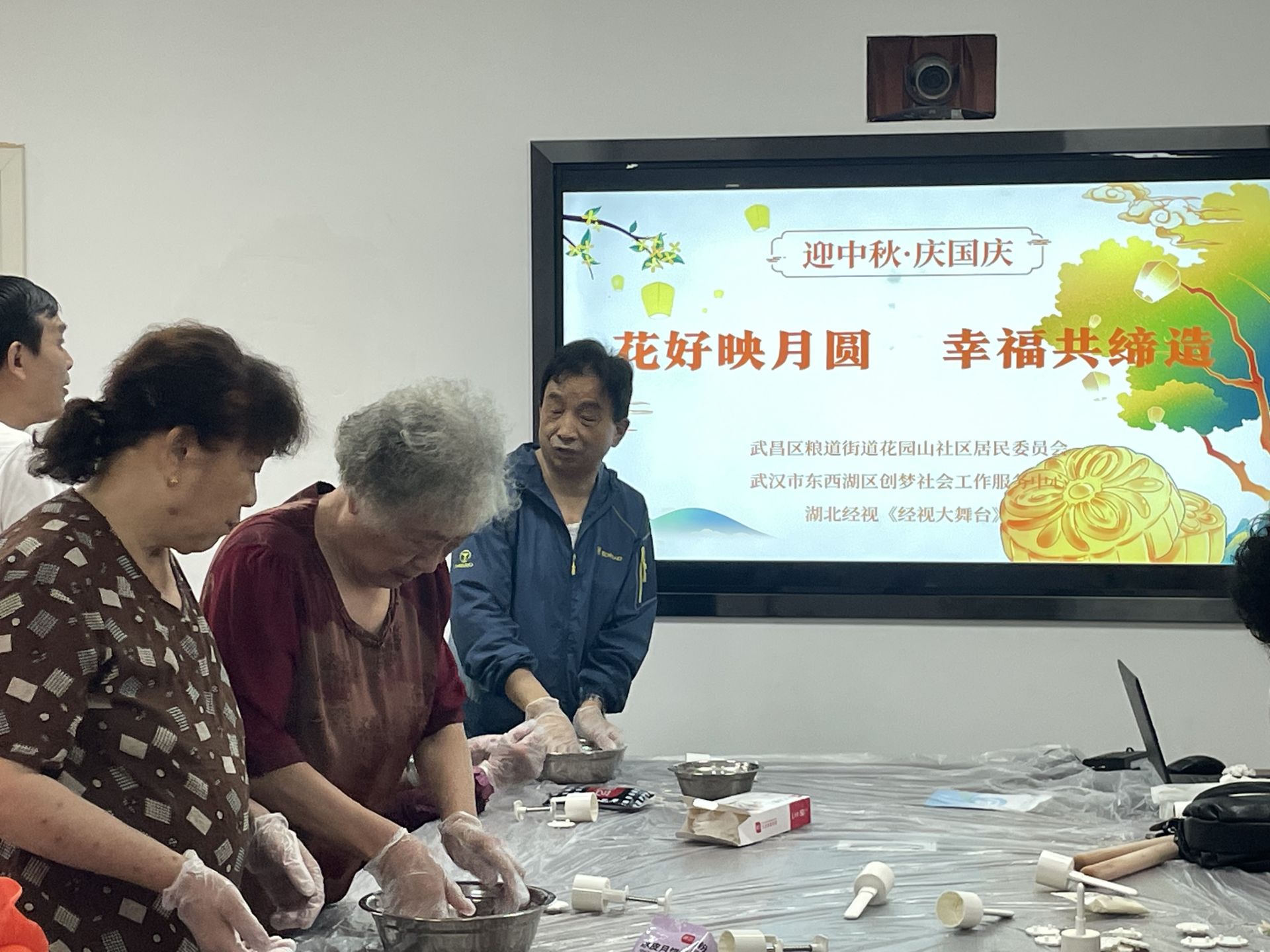 红旗漫卷千秋月,灯彩家国共此时。9月27日上午,武汉市武昌区粮道街道花园山社区联合东西湖区创梦社会工作服务中心、湖北经视《经视大舞台》开展了一场迎中秋庆国庆双节活动。本次活动以“花好映月圆 幸福共缔造”为主题,邀请辖区内党员、群众、新型就业群体参加。旨在借助传统节日氛围丰富辖区居民精神文化生活,共创共享有温度的社区。