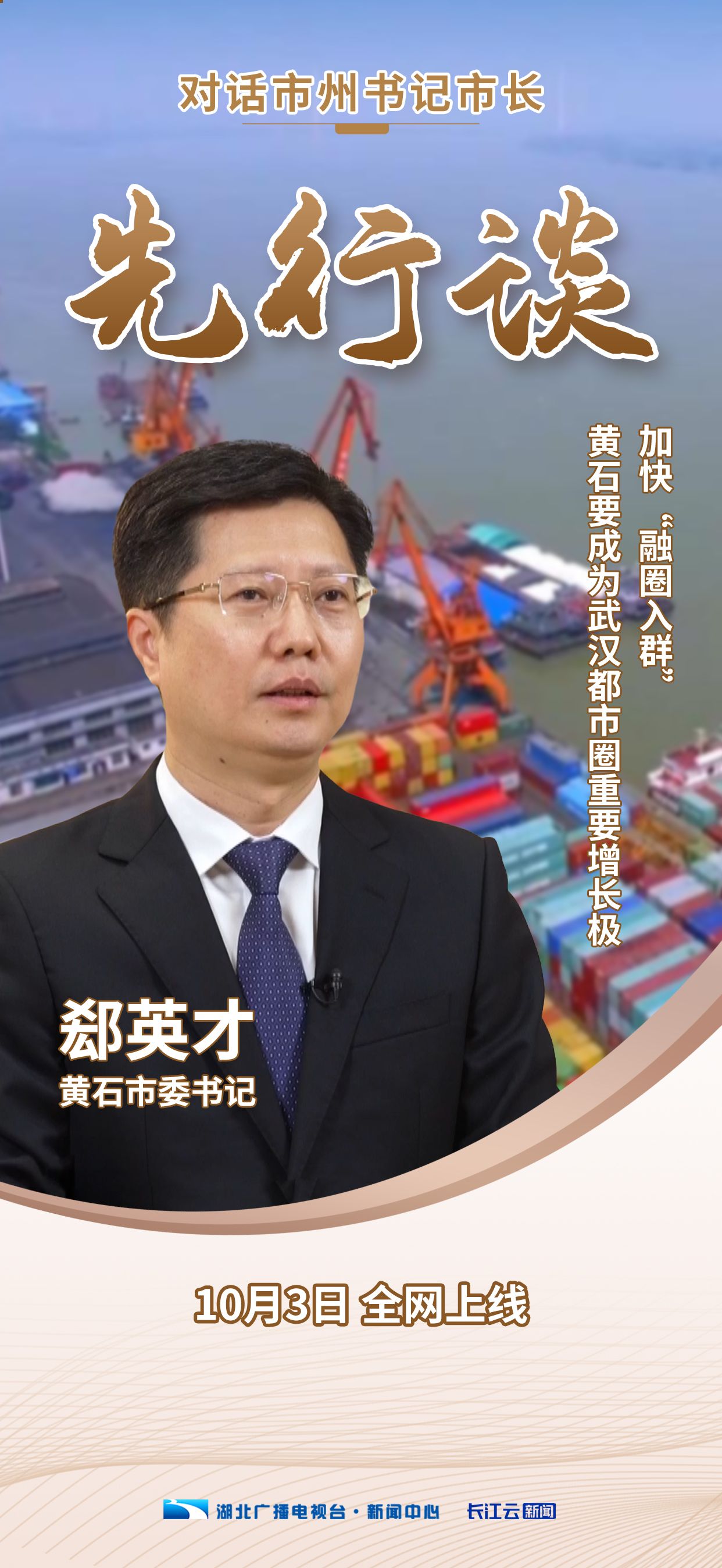 金秋十月,黄石市委书记郄英才相约《先行谈·对话市州书记市长》,畅谈黄石工业老城“二次创业”和加速“融圈入群”的发展故事。