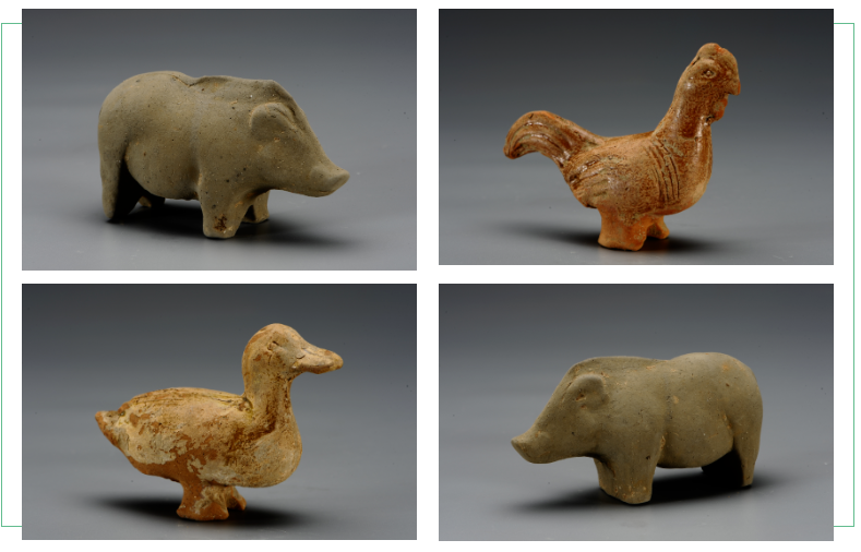 从陶塑动物如此繁多的种类来看,当时的人们已经驯化了鸡、狗、猪等家禽和家畜,陶塑品中还包括的大批野生动物,也间接地反映了当时的人们饲养和捕猎相结合的原始经济生活。