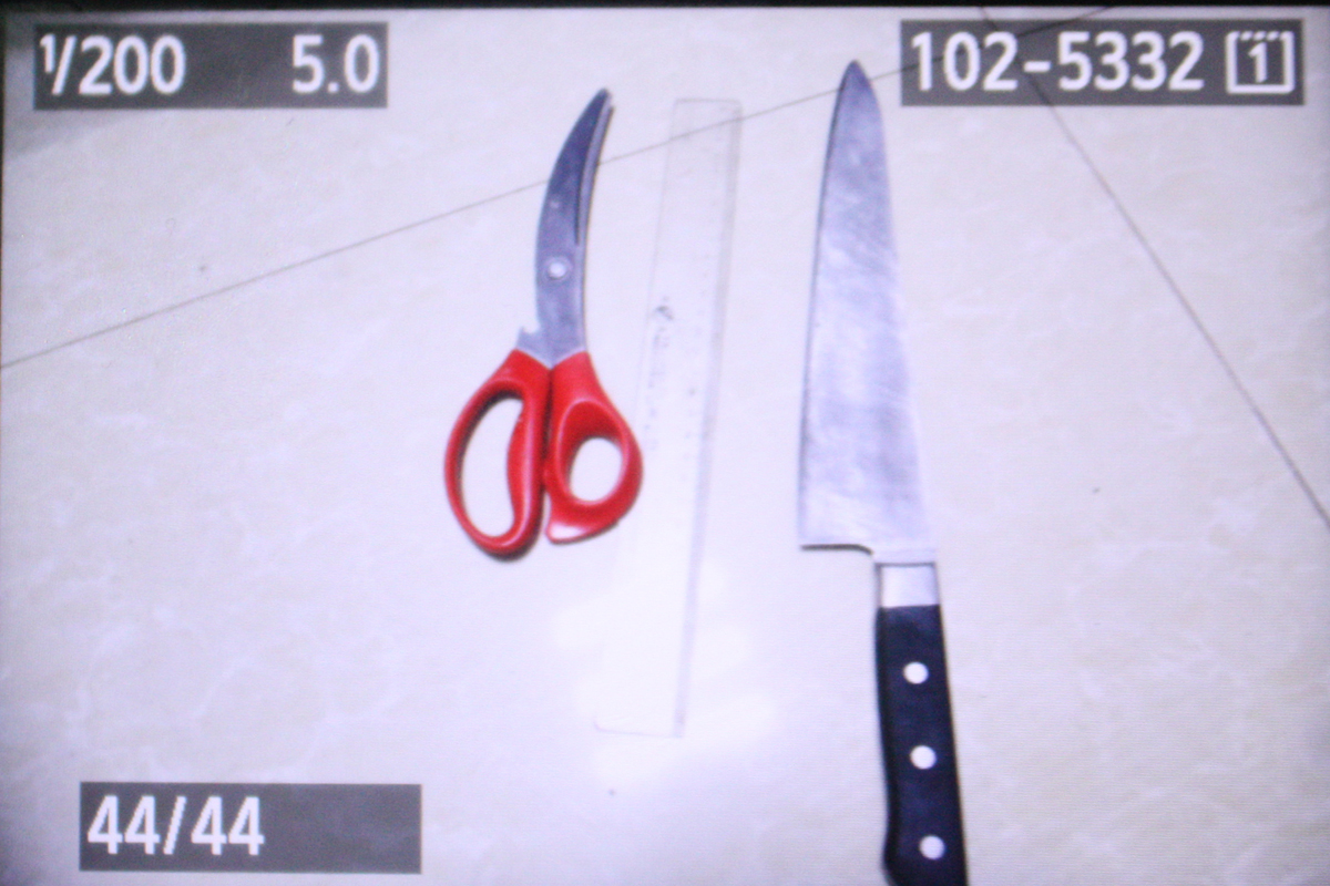 在现场,执勤武警公安发现,嫌犯25岁左右,着黑色上衣,下身穿牛仔裤,右手掐住女顾客的脖子,左手持一把20厘米长水果刀抵在她胸口,将该女顾客劫持为人质,情绪很激动。
