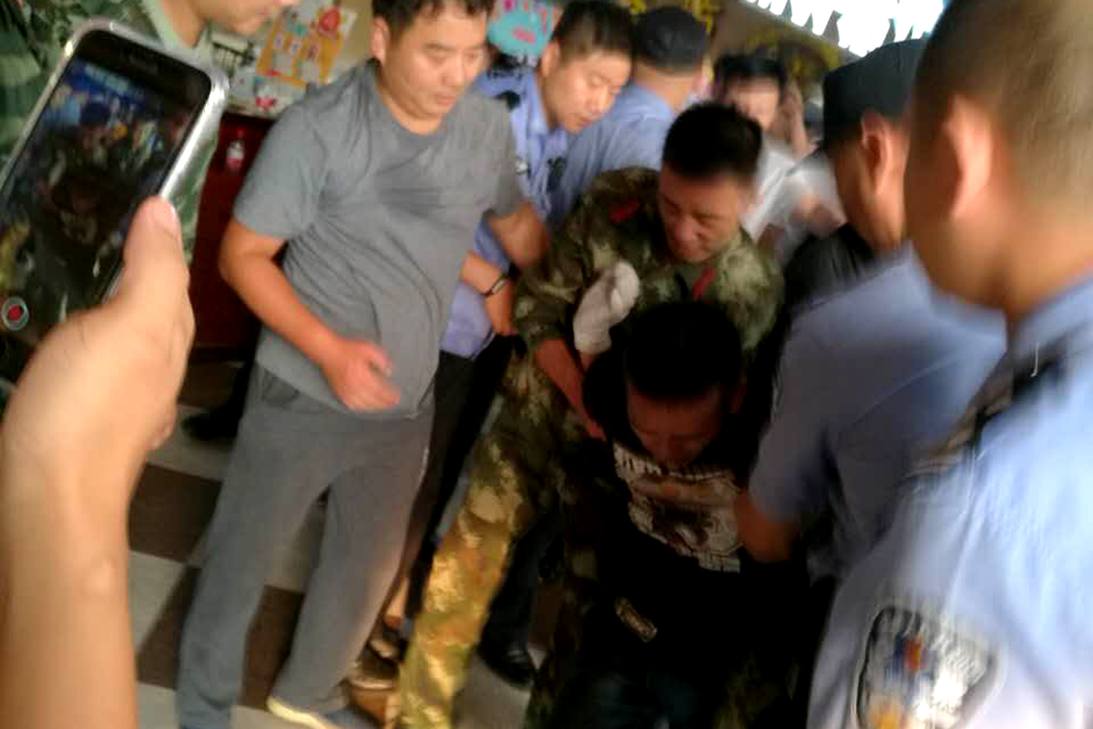 下午16时40分,嫌犯警惕性有所放松,注意力开始不集中,该男子手持的刀尖离开了女子的脖子,武警武汉市支队十九中队一班长张振山抓住有利时机,一个飞身弹踢将嫌犯手中的刀具踢落在地,并与身后的战友及民警一起将其死死控制,人质得到快速安全解救,整个处置过程,无一人受伤。