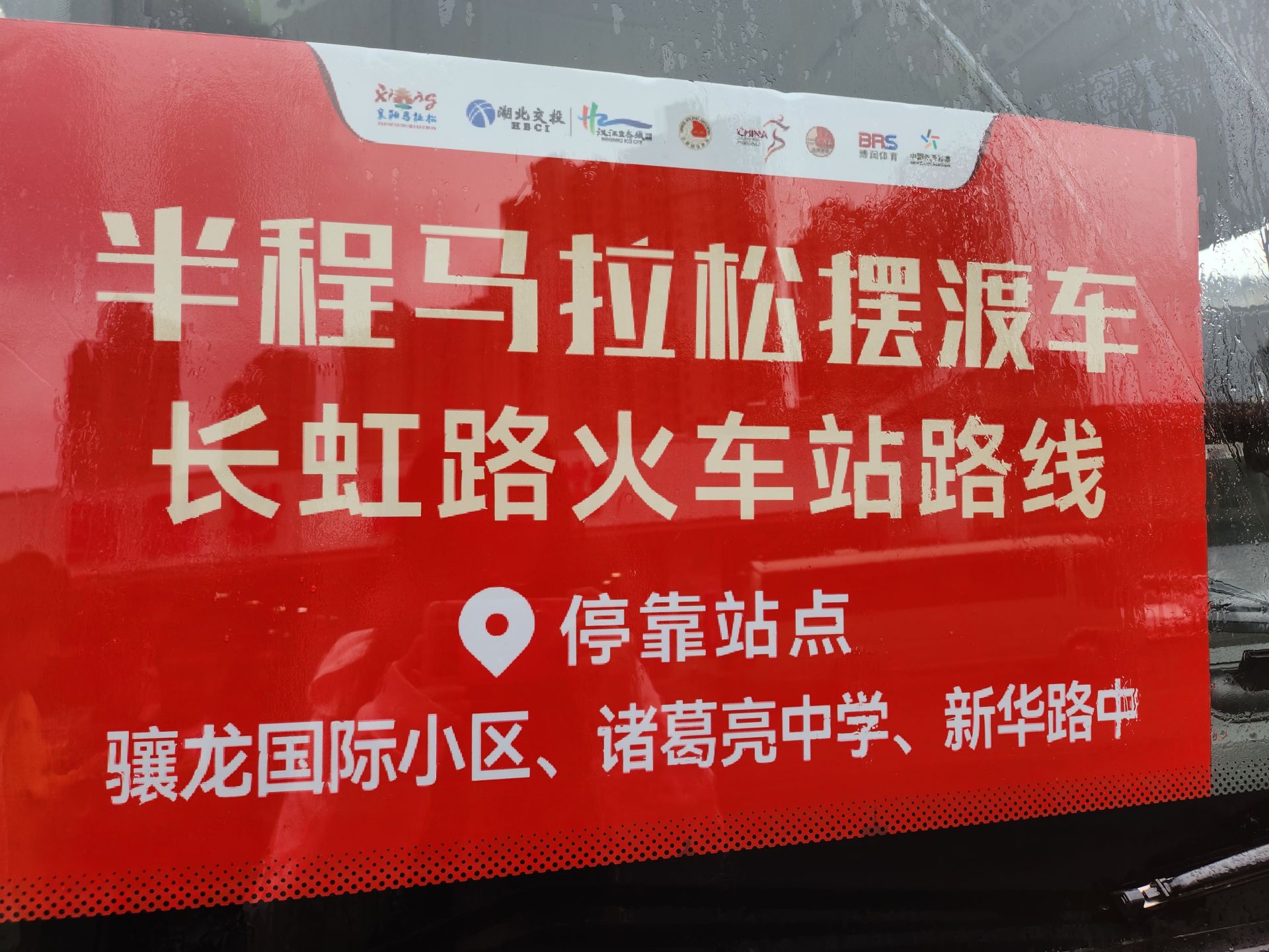 全马襄阳东站方向摆渡路线:紫贞路(起点)--(左转)长虹北路--长虹南路--(左转)环城南路--(右转)凤雏大道--(左转)杨家河路--(左转)鱼梁坪大道--(右转)环城南路--东津大道--(左转)南山路--(右转)荆山路--襄阳东站(调头后返回起点,循环接驳)。