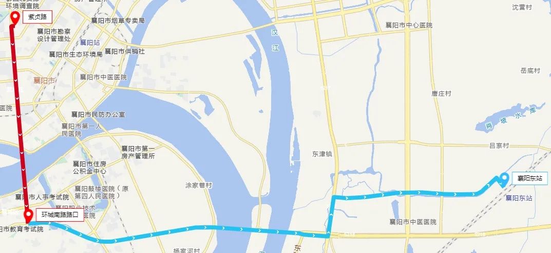 2、摆渡路线:环城南路方向摆渡路线:紫贞路(起点)--(左转逆行)长虹北路--(途径七里河西路口转顺行车道)长虹北路--环城南路路口(调头停靠后返回起点)。沿途停靠站点:长虹路人民路口、襄城客运站。