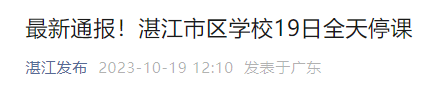 “湛江发布”10月19日发布消息,广东湛江市区学校19日全天停课: