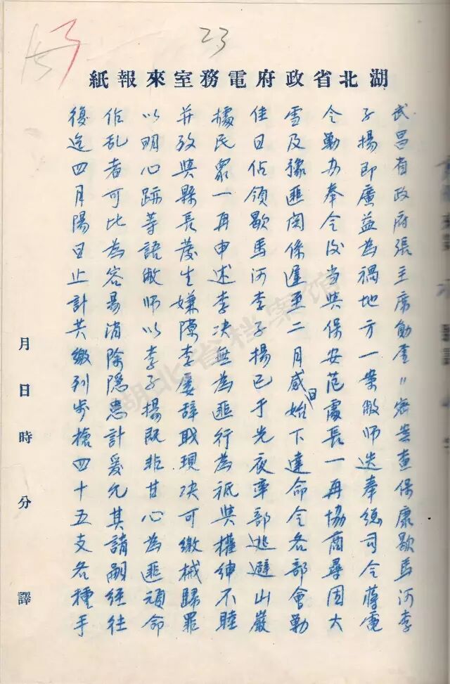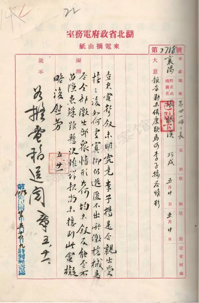 城破在即,湘鄂川边区“剿匪”总司令徐源泉急电驻守李家河、来凤地区的第41师师长张振汉驰援宣恩。