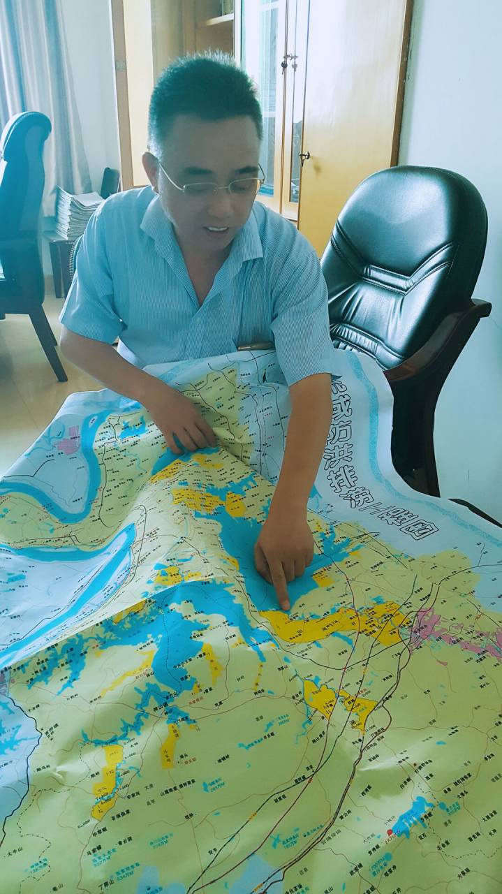 ↑↑↑咸宁市水务局总工程师刘四清给记者讲述斧头湖的变迁