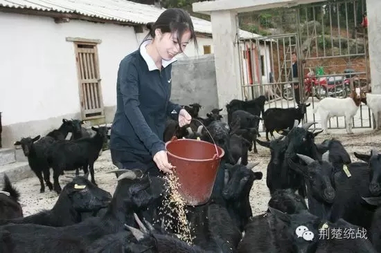 ▲湖北名羊农业科技发展有限公司董事长刘锦秀在喂养黑羊。