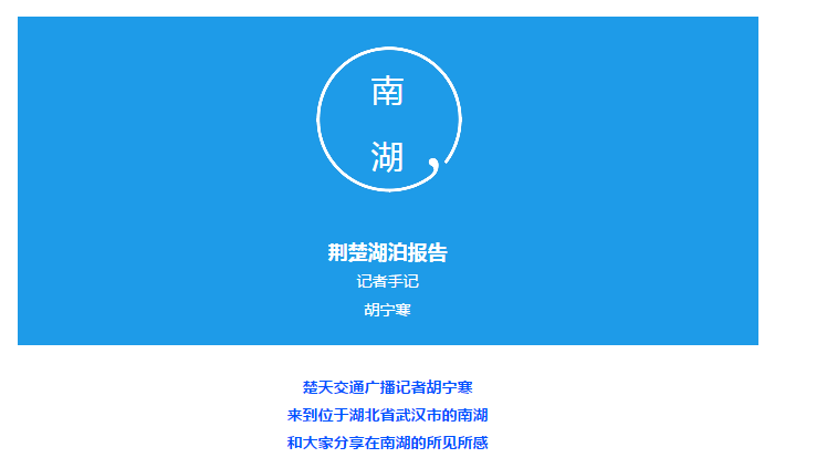 由湖北广播电视台交通广播和湖北省湖泊管理局联合推出大型主题宣传报道:《荆楚湖泊报告》,我们将以“走转改”的方式踏访湖北典型湖泊,以“家住湖边”的“我”为切口,用人文式、散文化、纪实性的笔触,全景式展现湖泊的变迁!