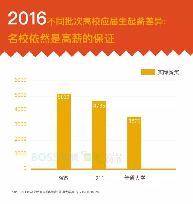 在就业竞争力与薪酬增长空间上,原985、211高校毕业生相比普通高校毕业生优势还是非常明显。