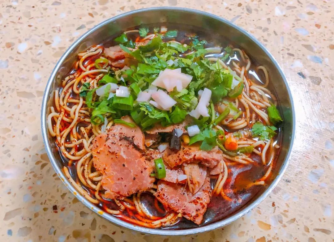 除了牛肉,南漳人还根据当地口味,搭配豆腐、海带、猪皮等臊子,使碱面又有了不同的风味。