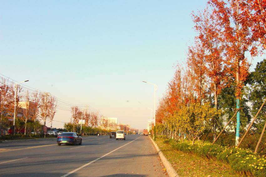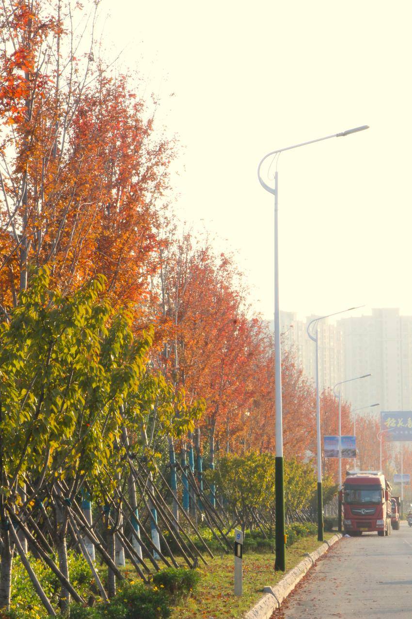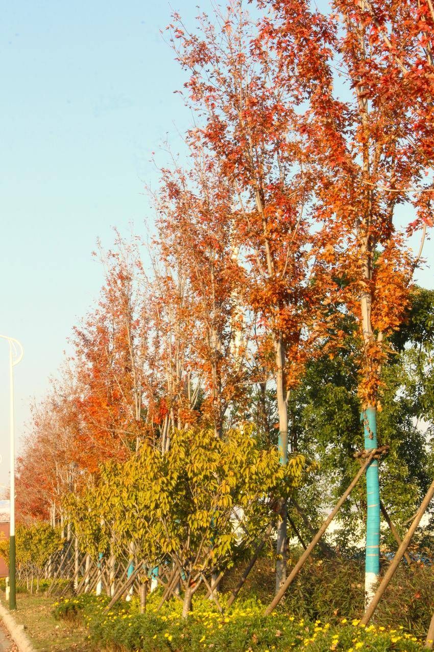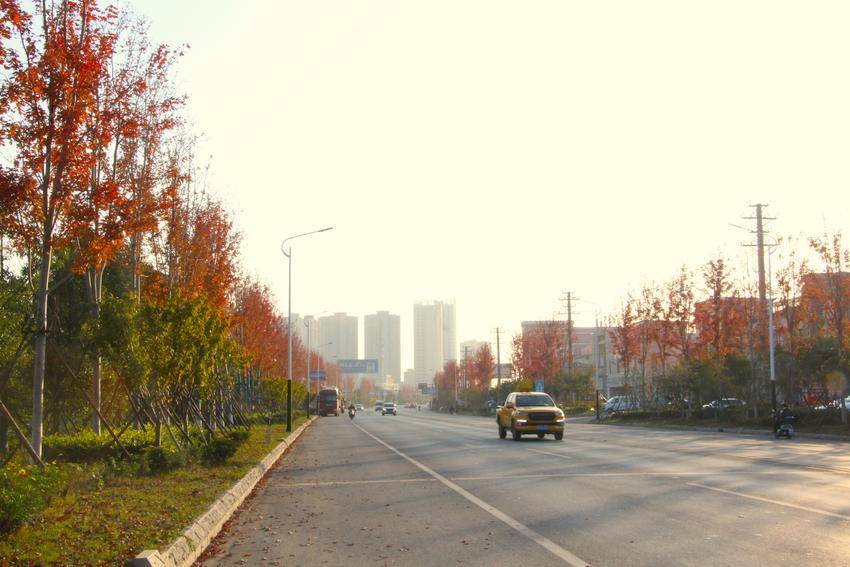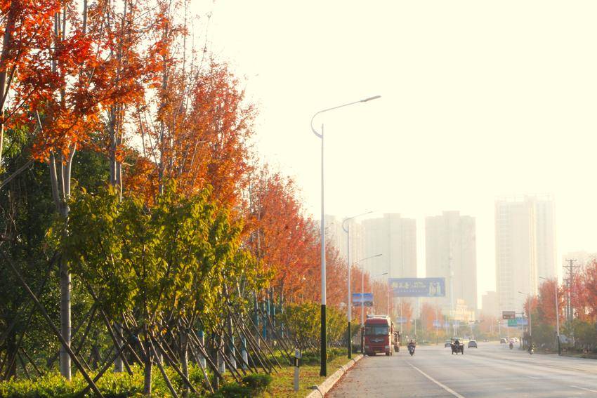 11月20日,湖北省孝感市云梦县城区北子文路两边高高的枫树,在冬日暖阳照射下红红火火的枫树叶染红了整条道路。冬日的枫树大道美轮美奂,“枫”景美如画令人醉。
