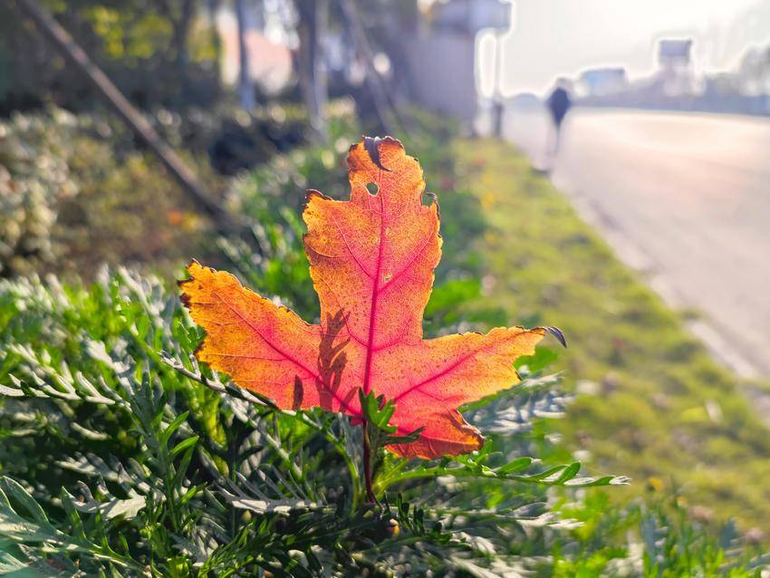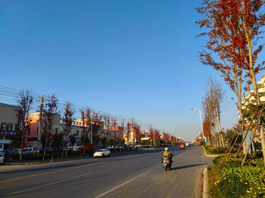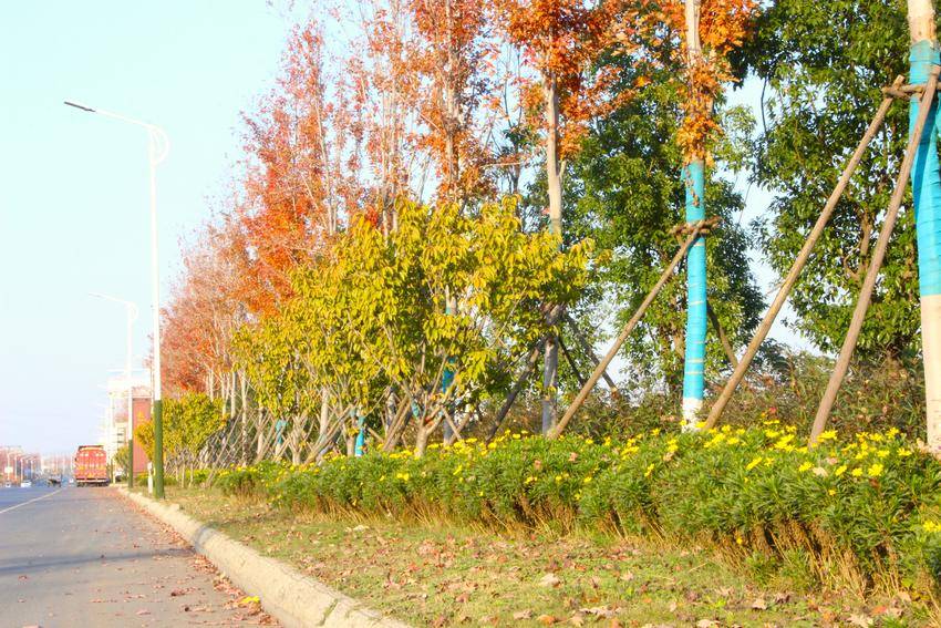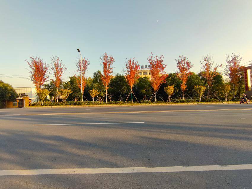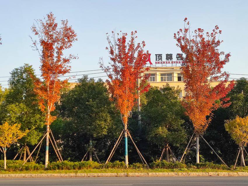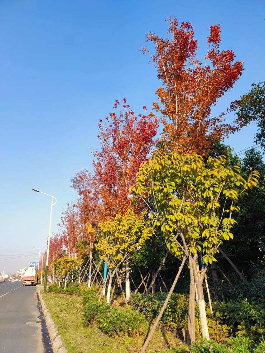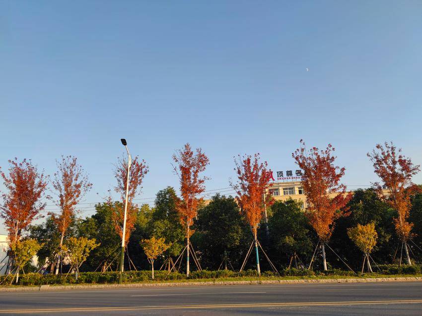 11月20日,湖北省孝感市云梦县城区北子文路两边高高的枫树,在冬日暖阳照射下红红火火的枫树叶染红了整条道路。冬日的枫树大道美轮美奂,“枫”景美如画令人醉。