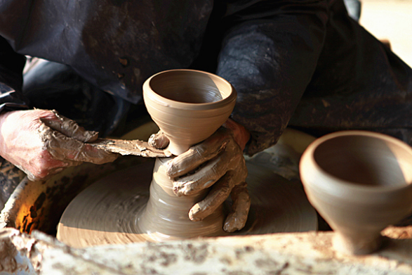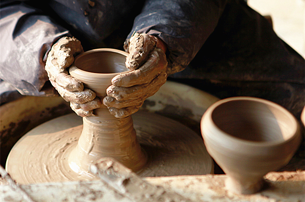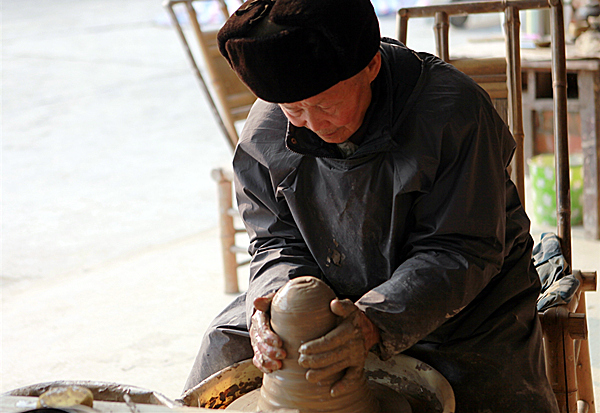 伴随制陶轮盘的转动,转出了传统手工陶艺器皿的精致,也转出了老艺人的工匠精神。