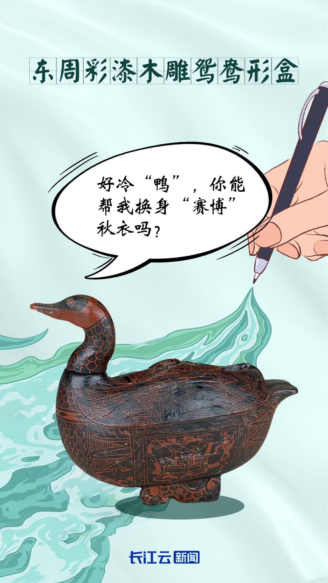 这件东周时期的“萌宠”,是曾侯乙墓出土的第1件文物。它通高 16.5 厘米,身长 20.1 厘米,身宽 12.5 厘米。最初登记为“鸭形盒”,后来有人建议叫“鸳鸯形盒”,被采纳沿用至今。