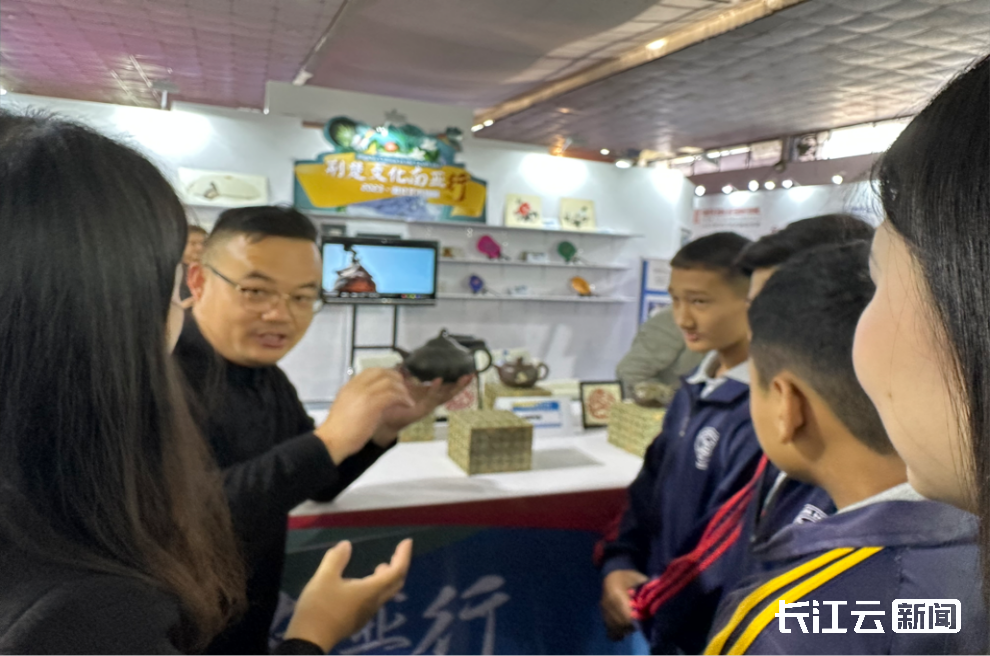 △湖北工艺美术协会秘书长宋志来介绍展品