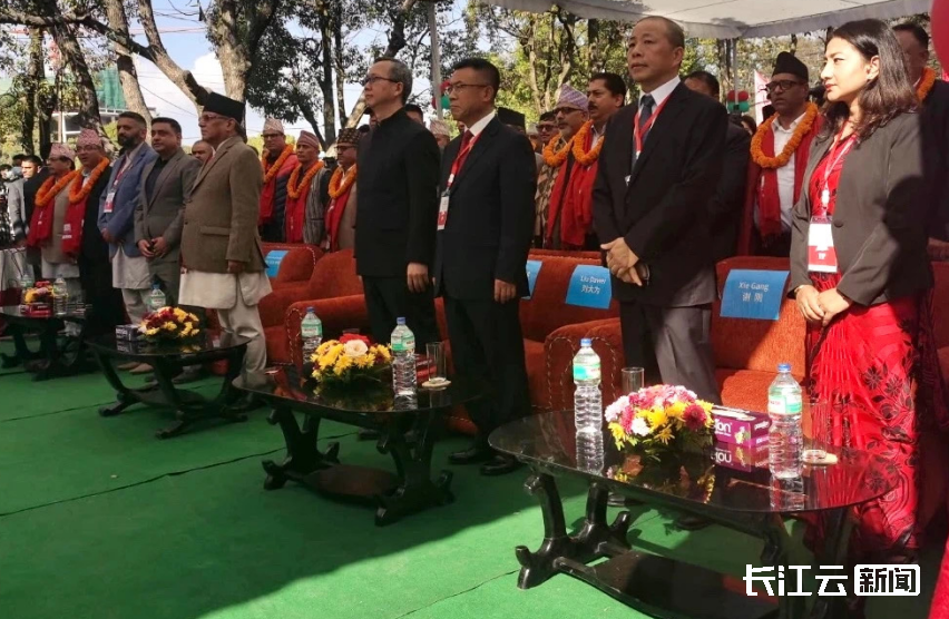 △首届南亚国际书展开幕式现场,尼泊尔总理普拉昌达、中国驻尼泊尔大使陈松、中国外文局副局长刘大为等中尼嘉宾应邀出席