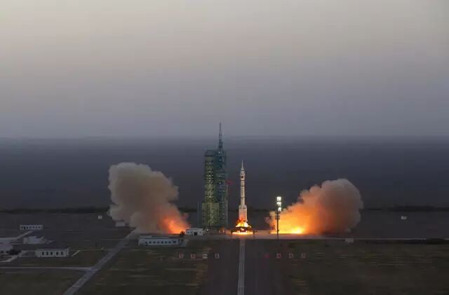 10月17日7时30分,搭载着神舟十一号载人飞船的长征二号F遥十一运载火箭在酒泉卫星发射中心点火升空。新华社记者 李刚 摄