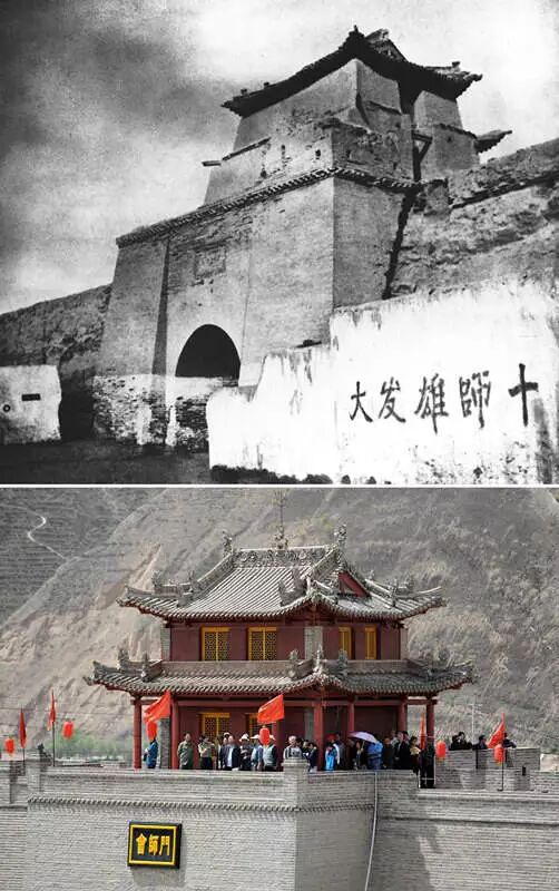 甘肃会宁县城西津门(现更名为红军会师旧址会师楼。上图:资料照片;下图:新华社记者聂建江摄于2011年5月17日)。新华社 发