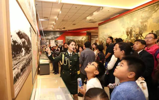 10月1日,在北京中国人民革命军事博物馆,解说员在为参观者讲解“英雄史诗 不朽丰碑——纪念中国工农红军长征胜利80周年主题展览”。新华社记者 殷刚 摄