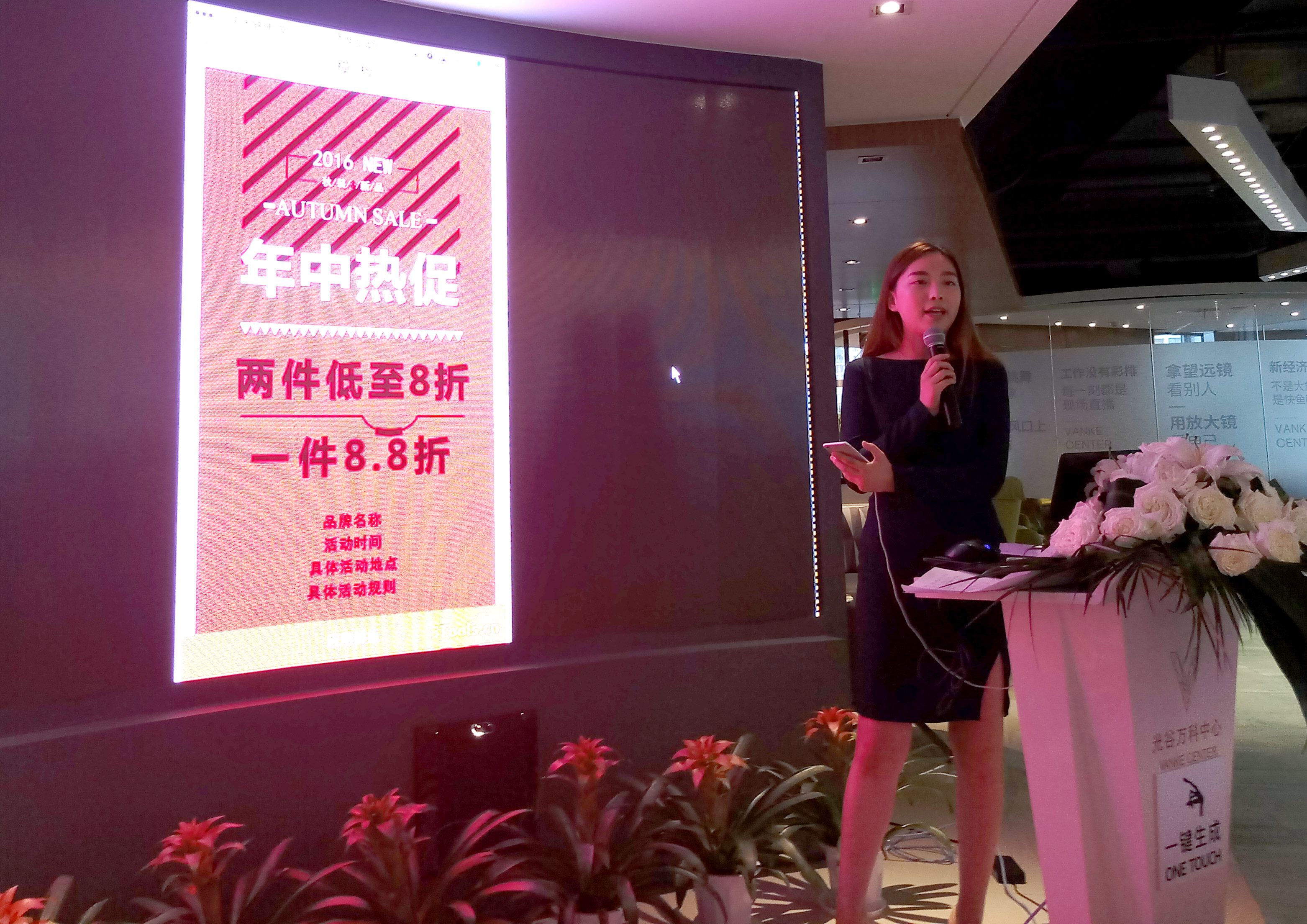 发布会上,一键生成美女CEO张玙璠现场演示产品新增的自动排版单页功能,并和嘉宾一起体验1分钟自动生成海报的快感。