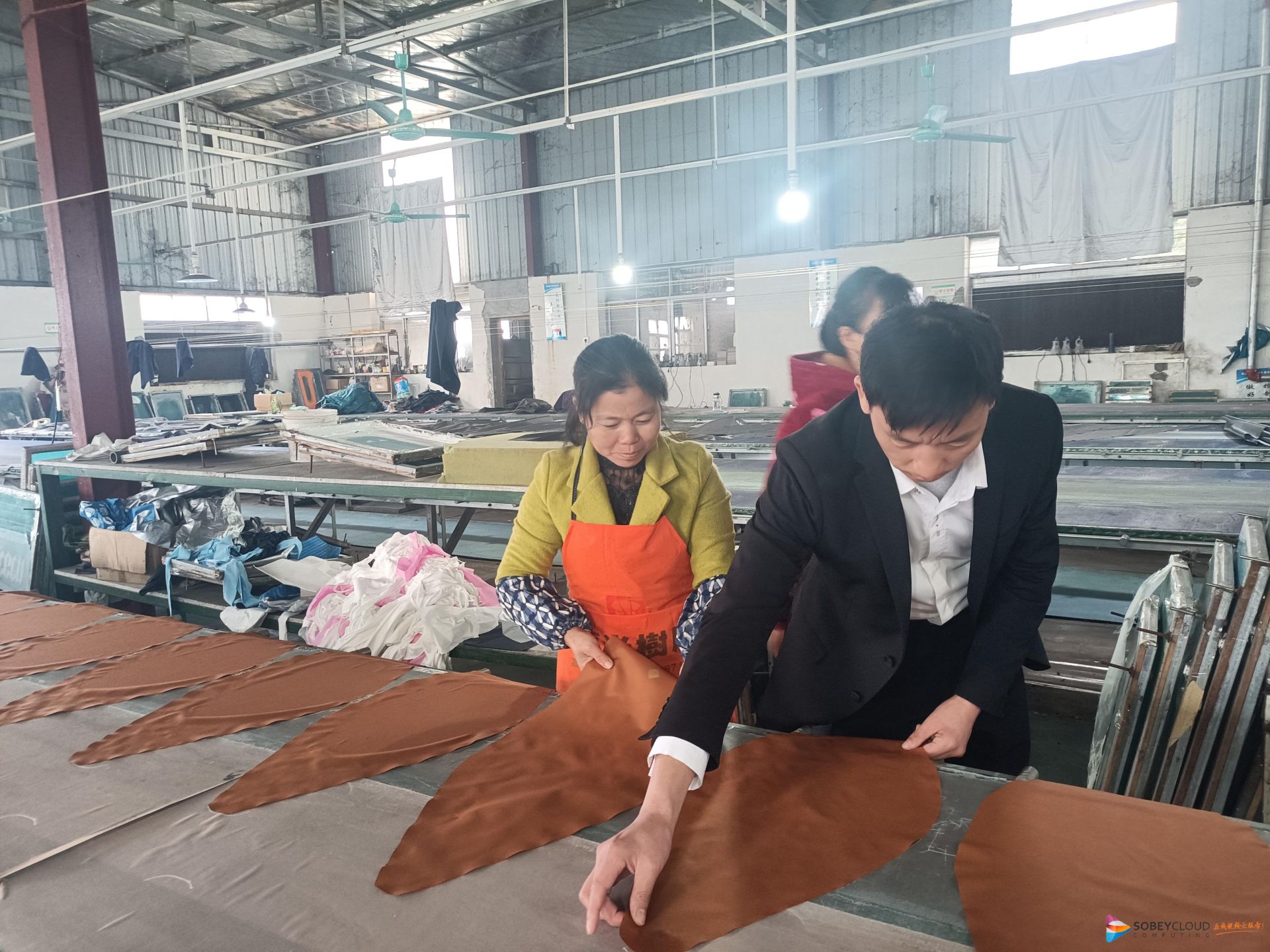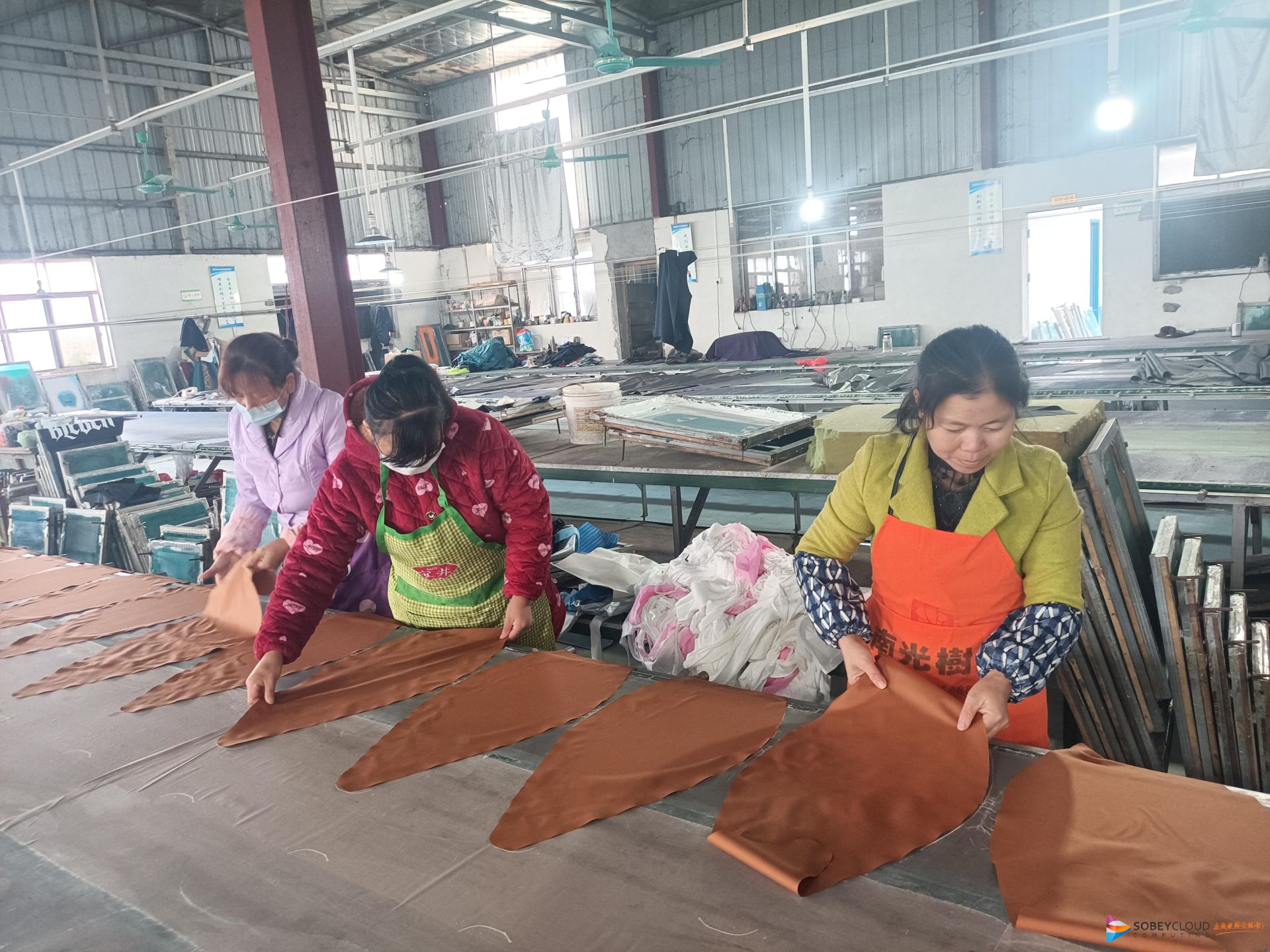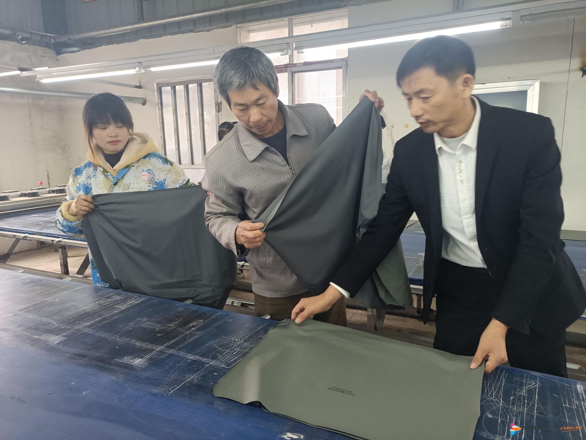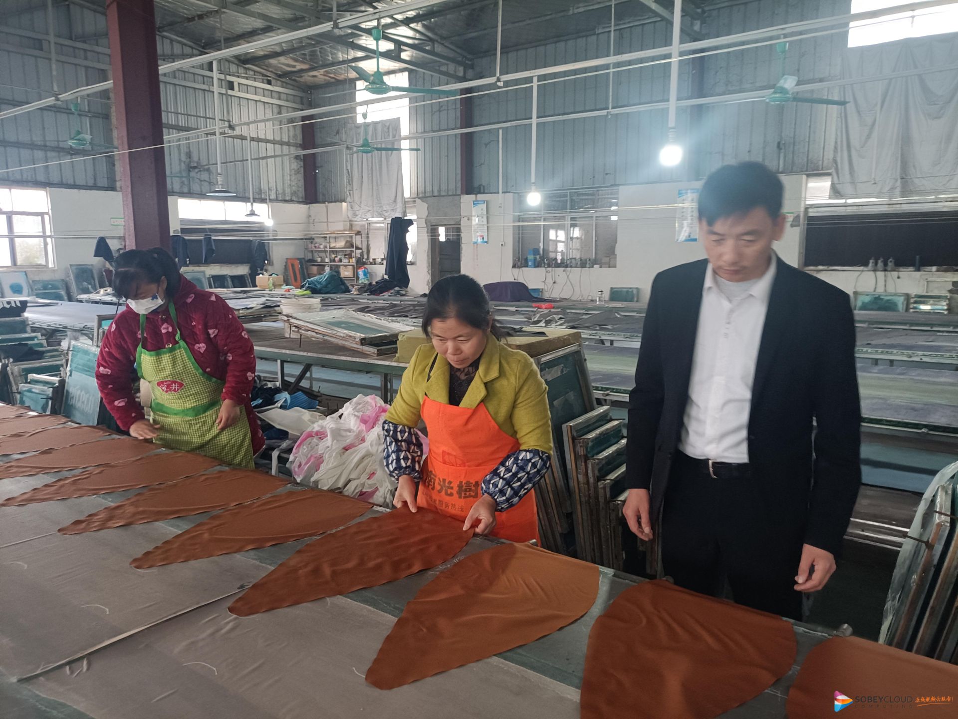 11月27日清晨,湖北黄石阳新县白沙镇名蕴印花厂内,灯火通明,生产车间一派繁忙景象,印花厂老板向可云正在有序地安排指导工人生产。