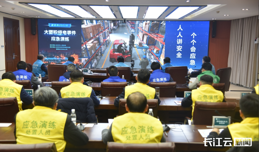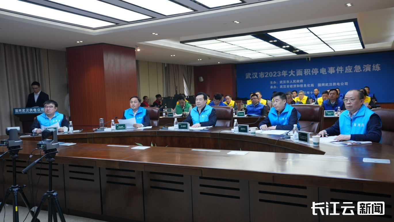 11月28日,武汉市举办2023年大面积停电事件应急演练。演练模拟一场强对流天气引发的自然灾害过后,因线路断线、杆塔倒塌、变压器损坏导致机场飞机停飞、地铁停运、医院停电、高层住宅电梯停运后开展应急响应,避免次生灾害,分配抢险资源,有序恢复生产生活的全过程。