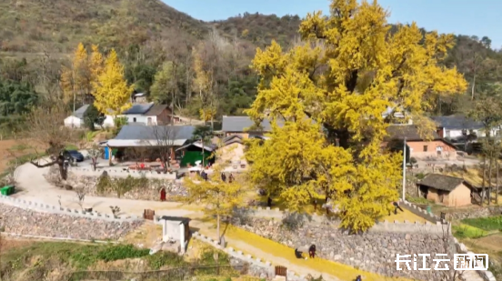 在初冬的阳光下,千年银杏如一把撑开的黄色大伞屹立在胡家泉村村头,微风轻拂,落叶纷飞,满地金黄。经湖北省林业部门鉴定,这棵千年银杏树已有1700多年的树龄,树高三十多米,主干直径约2米。为了更好地保护银杏树,村里专门修建银杏主题公园,在古树四周垒起高高的挡土墙,每年定期为古树补充营养液,千年古树枝繁叶茂。游客纷至沓来,也带热了当地的餐饮业、土特产销售。每到周末,村里的2家农家乐,8家民宿基本爆满。