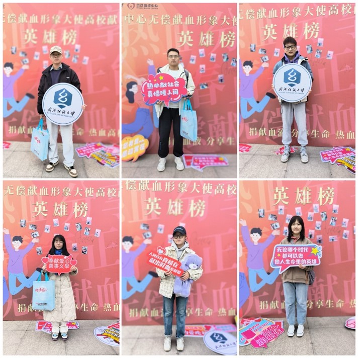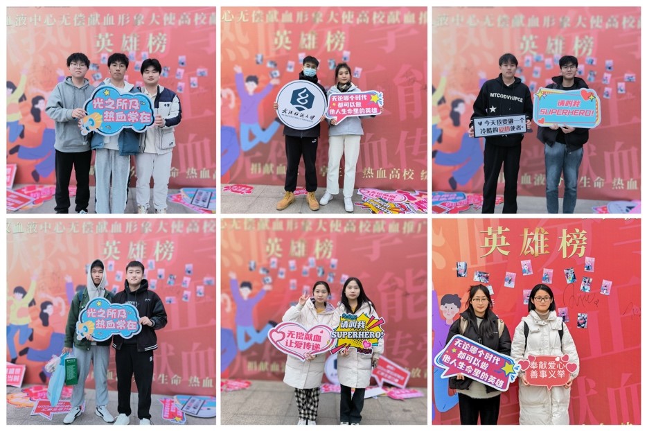 活动期间,武汉血液中心在阳光校区和南湖校区分别设立了三处献血点,志愿者们在医护人员的指引下,来到献血活动现场,扫码登记、体检、初筛,按照献血程序 依次进行采血,并为大家准备了充足的牛奶等营养物品。 同时,工作人员还设计了互动英雄榜供大家打卡留念。