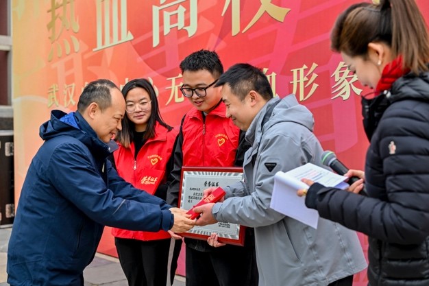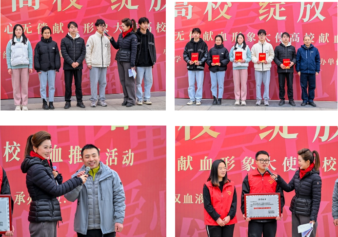 活动现场,武汉纺织大学的5位公益先锋,献血达人也与大家分享了自己的献血经历。武汉纺织大学管理学院团委书记王双喜,不仅是一位献血达人,还是一位无私奉献的无偿献血志愿者,他带领武汉纺织大学蓝鸟献血服务队代表们一起上台接受采访。武汉血液中心副主任袁明超为热血英雄们颁发荣誉证书。