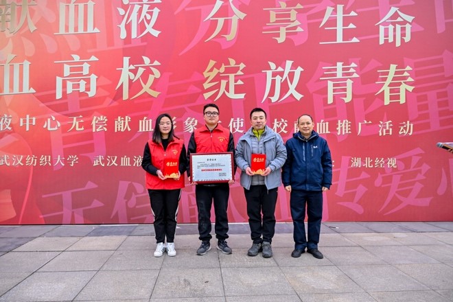 汇聚青春正能量,无偿献血传爱心,11月30日,由湖北经视与武汉血液中心主办的“热血高校·绽放青春”无偿献血高校共建系列活动,来到了武汉纺织大学。涓涓细流传递真情,汨汨热血温暖人心,武纺师生积极响应“捐献血液,分享生命”无偿献血号召,用自己的热血奉献爱心,传递正能量,助力生命续航。