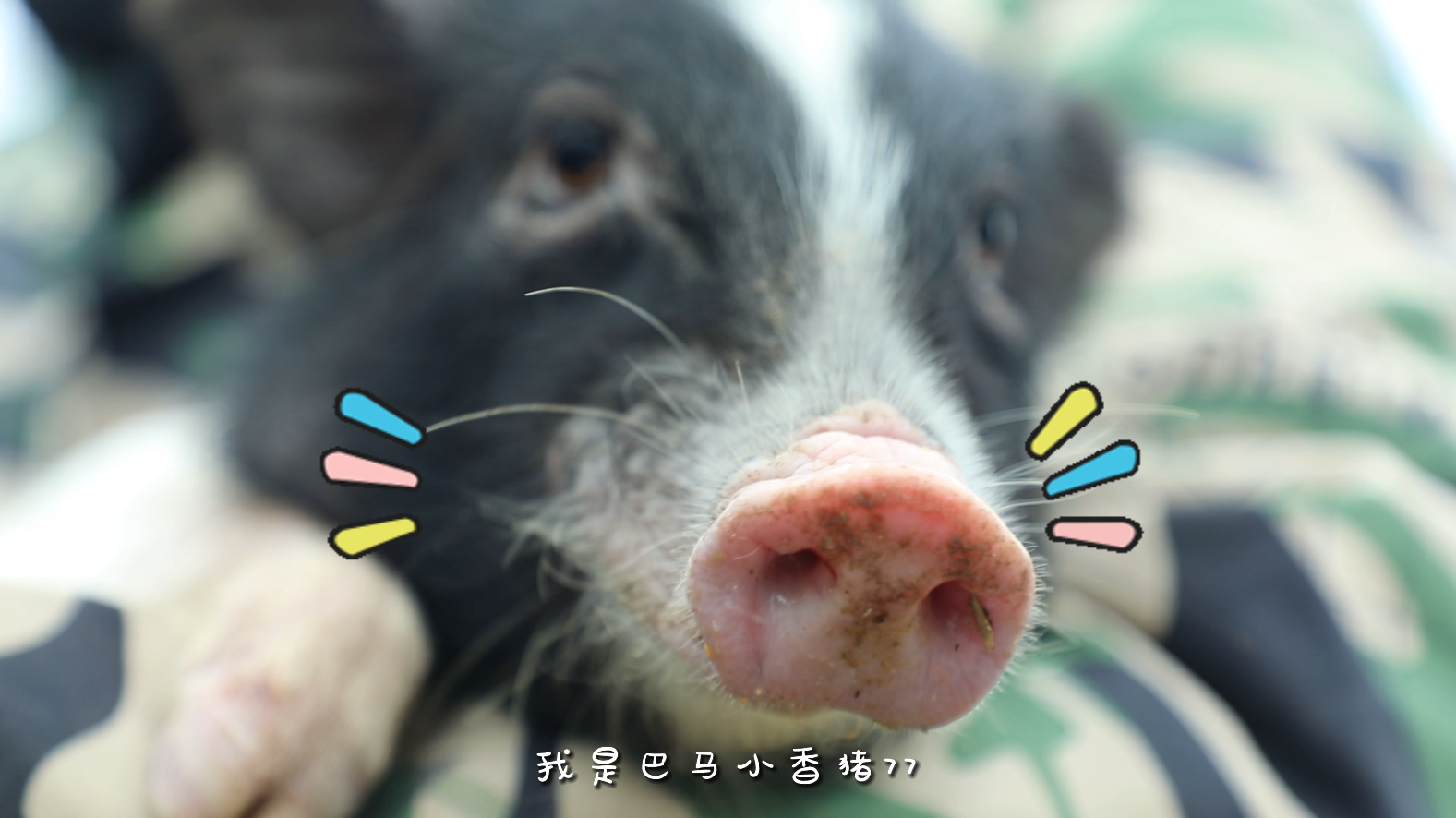和一般土猪相比,这种两头乌、中间白,头上还有着倒三角形白色纹路的就是我们巴马香猪。