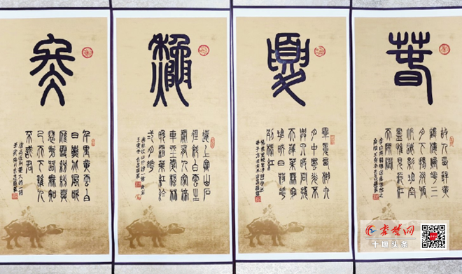 吉昌盛创作的“春夏秋冬”四联屏篆书作品,诗书结合,颇具美感。