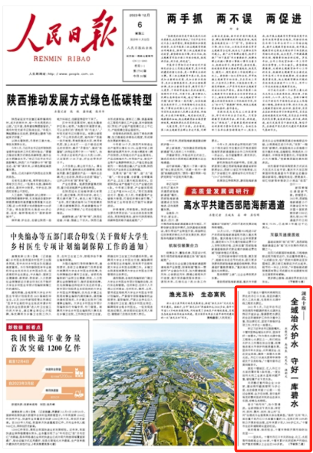 12月6日,《人民日报》头版刊文《湖北十堰——全域治水护水 守好一库碧水》,看十堰市如何坚持全域治水护水,坚决守好一库碧水。