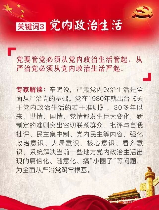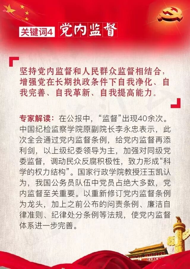当然,除了这个重要的关键词,公报中还有很多关于党内生活、党内监督的话,同样值得每一位党员牢牢记住。