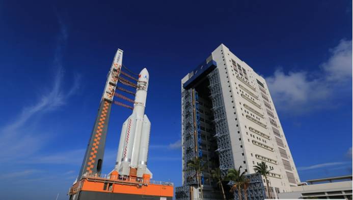 我国目前运载能力最大的火箭——长征五号运载火箭10月28日通过垂直转运从总装厂房转运至发射塔架,即将展开首次飞行试验。