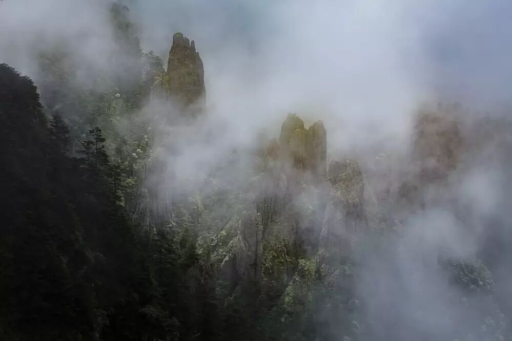 神农架,一片横亘在汉水和长江之间的神奇山地。这里群山万壑,峰峦迭翠;峡谷天雕,奇洞天成;锦石溪流,云流雾绕,构成一幅幅山水画卷。这里是长江和汉水暖湿气流的交汇中心,因而山顶气候多变,正所谓一天四景,而最为谜人的还是下雨的山林之景。