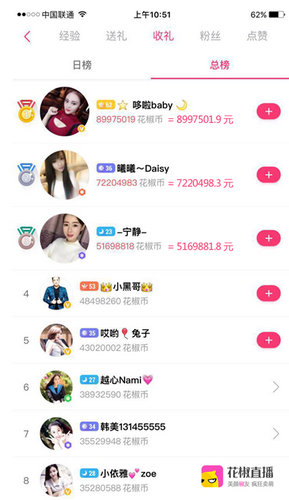 前100名主播月收入10万以上(花椒币兑人民币10:1)